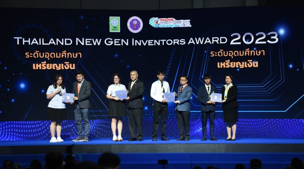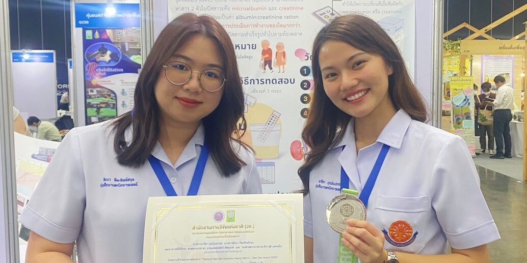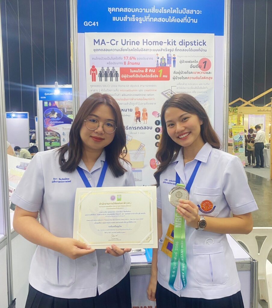 สำนักงานการวิจัยแห่งชาติ (วช.) กระทรวงการอุดมศึกษา วิทยาศาสตร์ วิจัยและนวัตกรรม (อว.) มอบรางวัลสิ่งประดิษฐ์ระดับเยาวชน Thailand New Gen Inventors Award : I-New Gen Award 2023 ระดับอุดมศึกษา รางวัลเหรียญเงิน ด้านสุขภาพและการแพทย์ ให้กับผลงาน “ชุดทดสอบความเสี่ยงโรคไตในปัสสาวะแบบสำเร็จรูป ที่ทดสอบได้ตนเองที่บ้าน” จากคณะสหเวชศาสตร์ มหาวิทยาลัยธรรมศาสตร์ ในงานวันนักประดิษฐ์ ประจำปี 2566 ที่ผ่านมา
