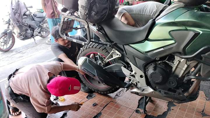 ได้มีลูกค้าเป็นชาวต่างประเทศหลังรถบิ๊กไบค์มาซ่อมที่ร้านสกายเวย์