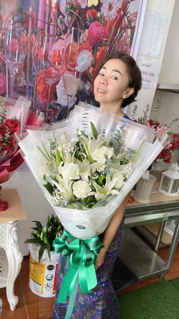 นางปวริศา รัตนตรัยรัตน์ เปิดเผยเพิ่มเติมว่า ต้องขอบคุณลูกค้าในวันนี้ที่โทรสั่งดอกไม้ส่งให้คนพิเศษในวันวาเลนไทน์