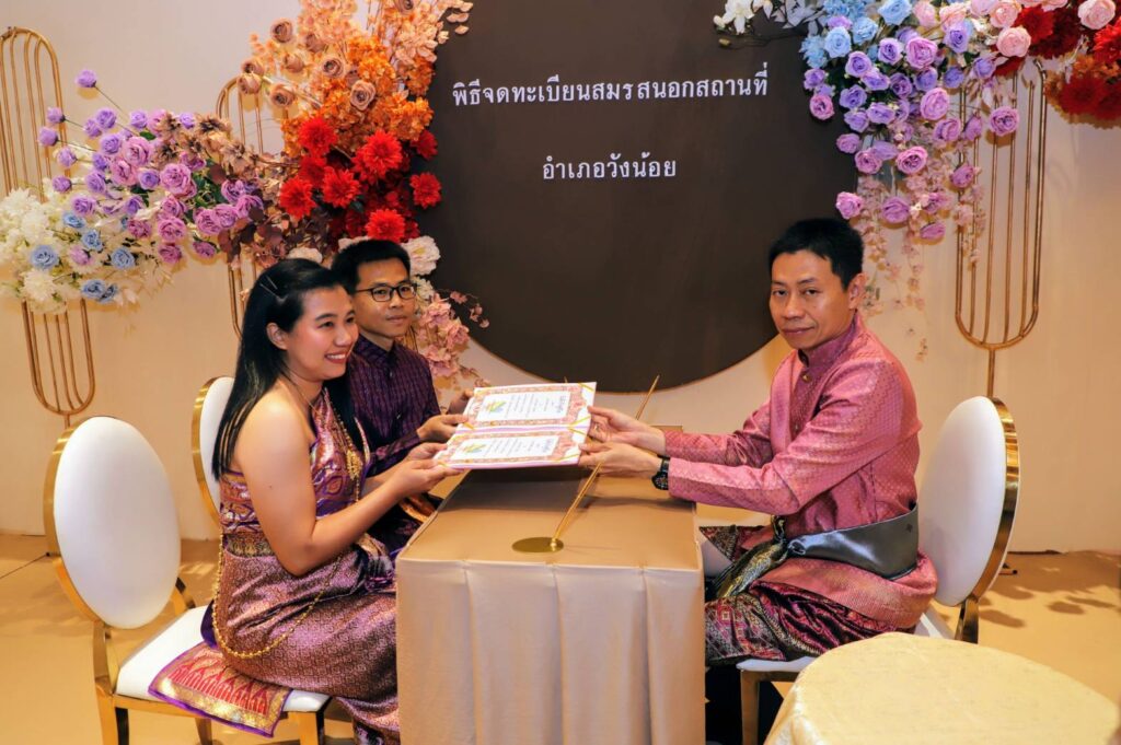 วันที่ 14 กุมภาพันธ์ ที่ ศาลาการเปรียญฯ วัดมหาจุฬาลงกรณราชทิศ ตำบลลำไทร อำเภอวังน้อย นายนิวัฒน์ รุ่งสาคร ผู้ว่าราชการจังหวัดพระนครศรีอยุธยา พร้อมด้วย นางวัชราภรณ์ รุ่งสาคร นายกเหล่ากาชาดจังหวัดพระนครศรีอยุธยา เป็นประธานในพิธีจดทะเบียนสมรสนอกสถานที่ “ทำบุญร่วมชาติ ตักบาตรร่วมขัน ปลูกต้นไม้ร่วมกัน สร้างกุศลร่วมกัน มหัศจรรย์วันวาเลนไทน์” ที่ทางอำเภอวังน้อยร่วมกับมหาจุฬาลงกรณราชทิศ จัดขึ้น โดยมี นายธีรเมธ เทพวิชัยศิลปะกุล นายอำเภอวังน้อย พร้อมหัวหน้าส่วนราชการให้การต้อน และได้รับเกียรติจาก นายกกชัย ฉายรัศมีกุล รองผู้ว่าราชการจังหวัดพระนครศรีอยุธยา นางสมทรง พันธ์เจริญวรกุล นายกองค์การบริหารส่วนจังหวัดพระนครศรีอยุธยา และแขกผู้มีเกียรติ มาร่วมพิธีในครั้งนี้ โดยได้รับความเมตตาจากพระเทพปวรเมธี รศ. ดร. ผู้รักษาการเจ้าอาวาส วัดมหาจุฬาลงกรณ์ราชูทิศ เป็นประธานฝ่ายสงฆ์