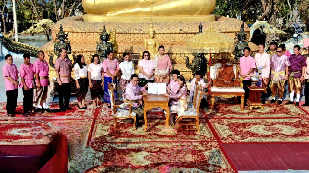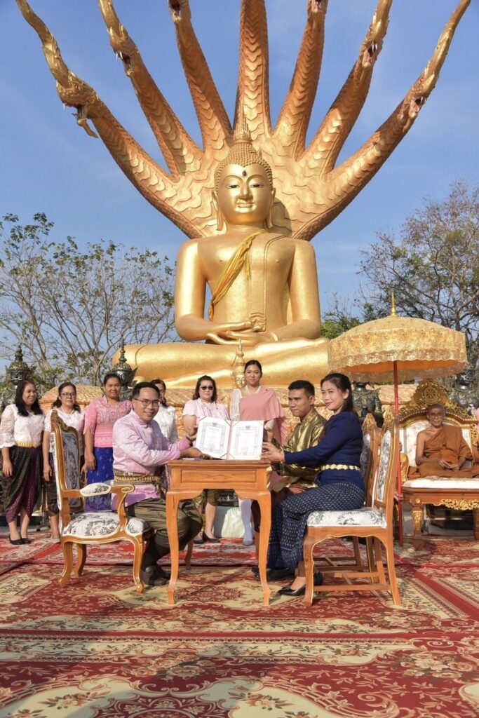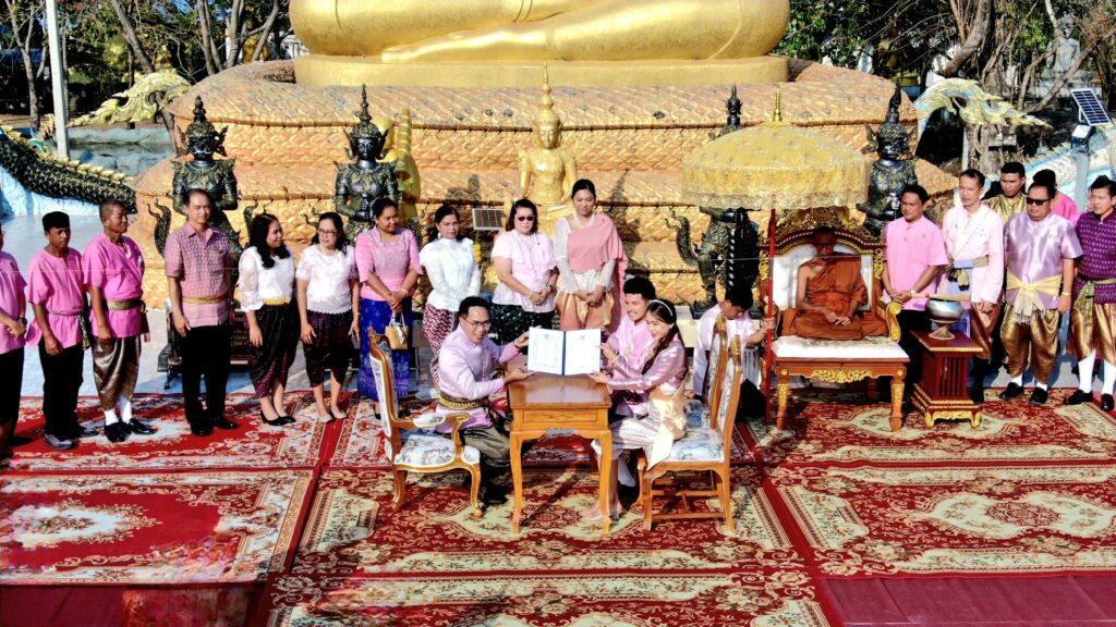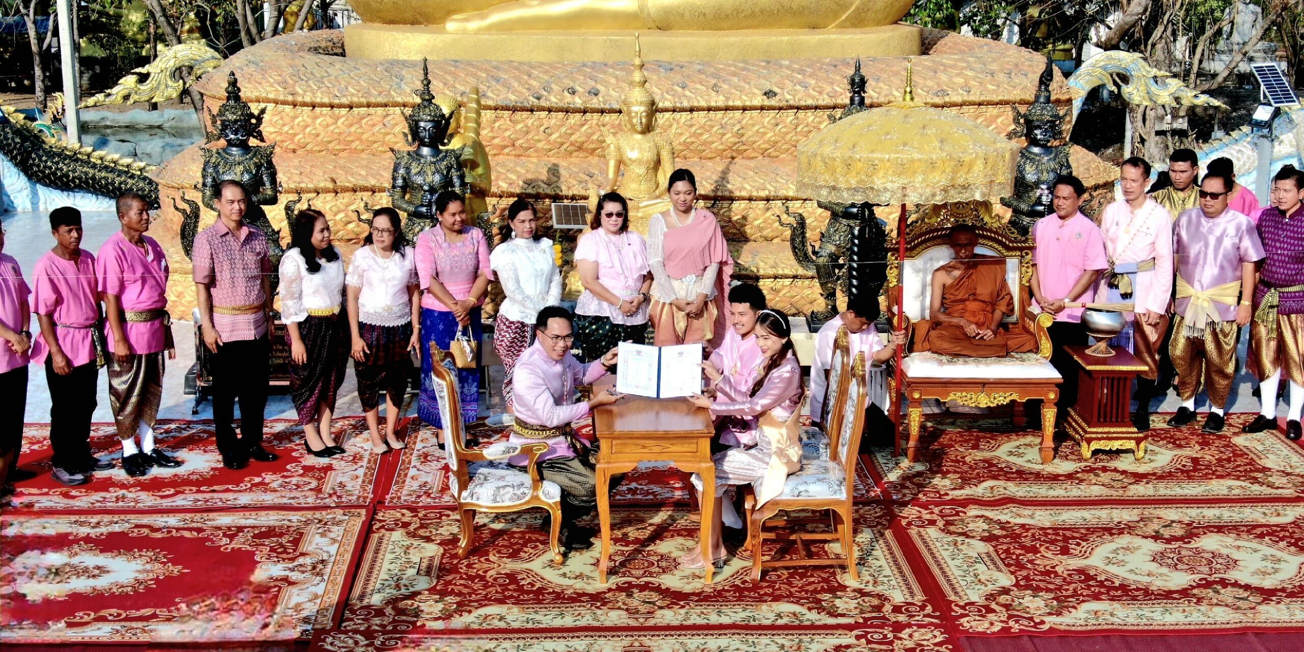 ที่ วัดชัยมงคลวนาราม หรือ วัดดงหลุ่ม ต.นิยมชัย อ.สระโบสถ์ จ.ลพบุรี สำนักงานทะเบียนอำเภอสระโบสถ์ จังหวัดลพบุรี ร่วมกับ องค์การบริหารส่วนตำบลนิยมชัย นำขบวนกลองยาว และ นางรำ ซึ่งแต่งชุดไทยสวยงาม ด้วยโจงกระเบนสีแดง พร้อมด้วย หัวหน้าส่วนราชการในอำเภอสระโบสถ์ ร่วมขบวนแห่ขันหมาก คู่บ่าว สาว จำนวน 7 คู่ จากหน้าวัดมงคลวนาราม ไปยังลานกิจกรรม บริเวณด้านหน้าองค์พระมุจลินท์นาคราช เพื่อประกอบพิธีจดทะเบียนสมรถ นอกสถานที่เป็นครั้งแรกของอำเภอสระโบสถ์ ณ สถานที่ศักดิ์สิทธิ์ และเป็นที่เคารพเลื่อมใสศรัทธา ของชาวอำเภอสระโบสถ์ ซึ่งอยู่ห่างจากที่ว่าการอำเภอสระโบสถ์ ราว 14 กิโลเมตร โดยมี นายชุมเมฆ มหาโยธี นายกองค์การบริหารส่วนตำบลนิยมชัย เป็นผู้กล่าวรายงานถึงการจัดกิจกรรมดังกล่าว ในโครงการจดทะเบียนสมรสในวันแห่งความรัก 14 กุมภาพันธ์ 2566 “รักนี้ที่… สระโบสถ์” ครั้งที่ 1 ประจำปีพ.ศ. 2566 โดยมี ว่าที่ร้อยตรี ภาณุพงศ์ ศิริ นายอำเภอสระโบสถ์ เป็นประธาน ในพิธีจดทะเบียนสมรส และมอบใบทะเบียนสมรถให้แก่ คู่สมรส ทั้ง 7 คู่ โดยไม่มีค่าใช้จ่าย ตลอดพิธี โดยคู่สมรส ทั้ง 7 คู่ ยังได้รับของที่ระลึก พร้อมรับการปะพรมน้ำมนต์จากเจ้าอาวาส วัดชัยมงคลวนาราม หรือ วัดดงหลุ่ม เพื่อเสริมความเป็นสิริมงคลในชีวิตคู่ เนื่องในวันแห่งคว