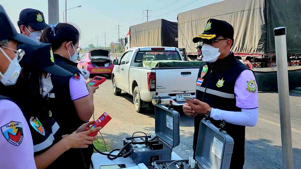 ที่ บริเวณ หน้าหน่วยบริการประชาชนตำรวจทางหลวงพัฒนานิคม ตำบลดีลัง อำเภอพัฒนานิคม จังหวัดลพบุรี นายธีระพงษ์ วิมลจิตรานนท์ ผู้อำนวยการสำนักงานสิ่งแวดล้อมและควบคุมมลพิษที่ 7 พร้อมด้วย เจ้าหน้าที่สำนักงานสิ่งแวดล้อมและควบคุมมลพิษที่ 7 เจ้าหน้าที่จากสำนักงานทรัพยากรธรรมชาติและสิ่งแวดล้อมจังหวัดลพบุรี เจ้าหน้าที่สำนักงานขนส่งจังหวัดลพบุรี เจ้าหน้าที่ตำรวจสถานีตำรวจภูธรพัฒนานิคม และฝ่ายปกครองเทศบาลตำบลดีลัง กว่า 30 คน ร่วมกัน เปิดปฏิบัติการ kick off คุมเข้ม ตรวจจับ ปรับจริง ห้ามใช้รถควันดำ ลดปัญหาฝุ่นมลพิษ PM2.5 โดยได้ตั้งจุดตรวจ พร้อมนำอุปรกรณ์เครื่องมือชุดตรวจทางเทคโนโลยี ดำเนินการตรวจสอบ และห้ามใช้รถยนต์ควันดำ ที่วิ่งผ่านทางหลวงหมายเลข 21 ซึ่งเป็นเส้นทางผ่านพื้นที่ชุมชน และเขตตัวเมืองหลายแห่งในพื้นที่จังหวัดลพบุรี และจังหวัดใกล้เคียง ณ จุดตรวจสอบ ตรวจจับรถควันดำ บริเวณ ริมถนนทางหลวงหมายเลข 21 สายสระบุรี-ลพบุรี-หล่มสัก หน่วยบริการประชาชนตำรวจทางหลวงพัฒนานิคม ตำบลดีลัง อำเภอพัฒนานิคม จังหวัดลพบุรี