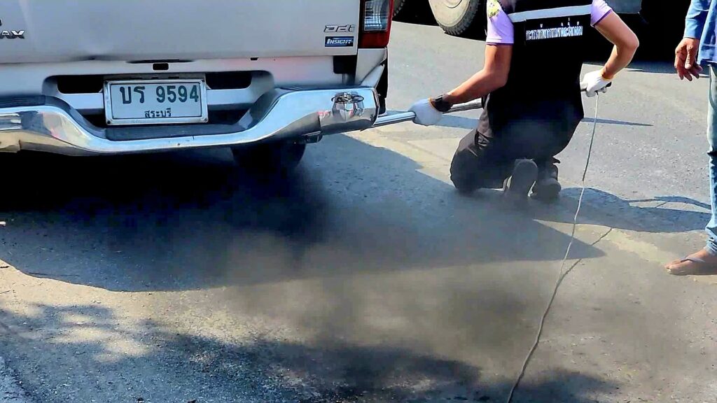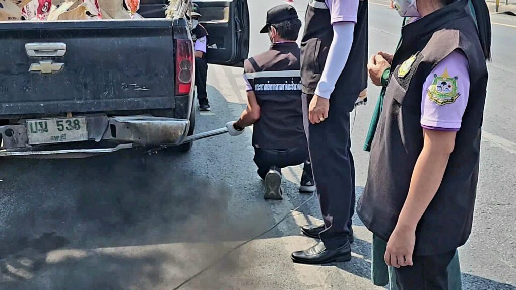 ซึ่งผลการปฏิบัติ จากซุ่มเรียกรถยนต์ กลุ่มเป้าหมาย ซึ่งเน้นรถยนต์ดีเซล ตรวจสอบจำนวน 76 คัน พบรถควันดำ เกินค่ามาตรฐานที่กฎหมายกำหนด จำนวน 3 คัน แบ่งออกเป็น รถยนต์ตาม พ.ร.บ.สิ่งแวดล้อมฯ จำนวน 31 คัน ไม่พบควันดำเกินค่ามาตรฐาน และ รถยนต์ตาม พ.ร.บ. ขนส่งฯ จำนวน 45 คัน พบควันดำเกินค่ามาตรฐาน จำนวน 3 คัน พนักงานเจ้าหน้าที่ออกคำสั่งห้ามใช้รถชั่วคราว โดยการติดสติ๊กเกอร์ และพ่นสีบริเวณกระจกหน้ารถ ระบุข้อความ ห้ามใช้รถเป็นการชั่วคราว จำนวน 3 คัน