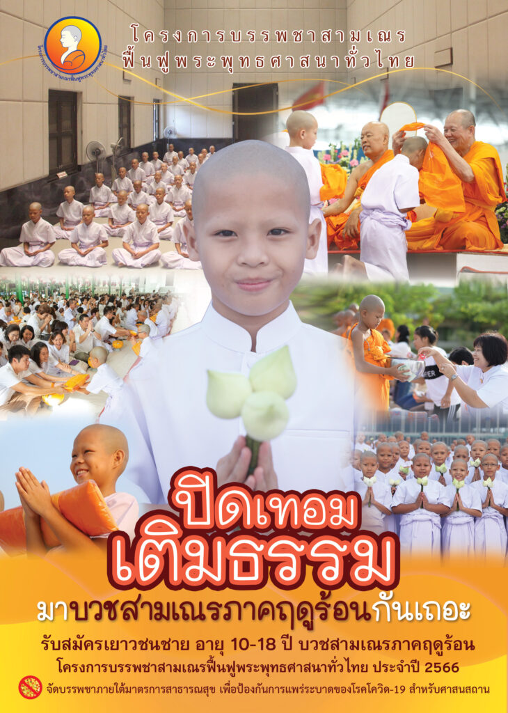 วันที่ 15 กุมภาพันธ์ 2566 ภาคีเครือข่าย “บวร” ทั่วประเทศ ร่วมกับ ชมรมพุทธศาสตร์สากล ฯ , ศูนย์ส่งเสริมศีลธรรมทั่วประเทศ องค์การพุทธโลก , วัดพระธรรมกาย มูลนิธิธรรมกาย จังหวัดปทุมธานี ได้จัดโครงการ “บรรพชาสามเณรฟื้นฟูพระพุทธศาสนาทั่วไทย” ประจำปี พ.ศ. 2566 “ปิดเทอม เติมศีลธรรม-สมาธิ” ระหว่างวันที่ 26 มีนาคม – 7 พฤษภาคม 2566 ณ ศูนย์ส่งเสริมศีลธรรมประจำจังหวัดทั่วประเทศ