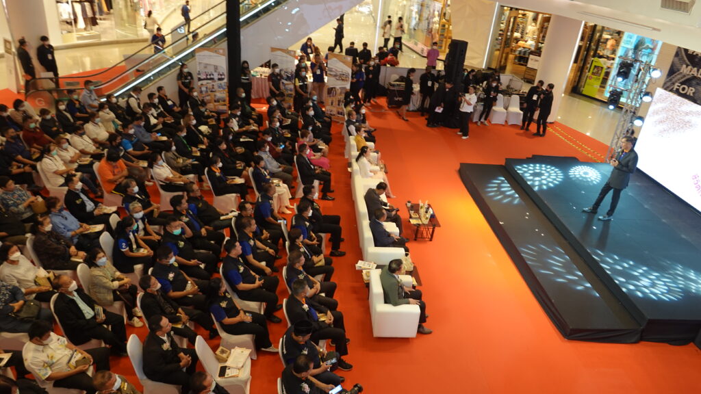ส่วน นายภคพงศ์ ศิริกันทรมาศ ผู้ว่าการการรถไฟฟ้าขนส่งมวลชนแห่งประเทศไทย (รฟม.) กล่าวว่า ในส่วนที่ท่าน พล.ต.ท.คำรณวิทย์ ธูปกระจ่าง นายก องค์การบริหารส่วนจังหวัดปทุมธานีได้มีความคิดริเริ่มรถไฟฟ้าโมโนเรลที่จังหวัดปทุมธานี ในส่วนของ รฟม.จะมารับไม้ต่อหลังจากที่มีการศึกษาความเหมาะสมผลกระทบต่อสิ่งแวดล้อม ในส่วนของการรถไฟฟ้าขนส่งมวลชนระบบรอง นโยบายภาครัฐจะให้เอกชนร่วมทุนโดยจะต้องมีการดำเนินการต่อไปตามที่มีการประชุมร่วมลงทุน จะมีการคัดเลือกเอกชนที่สนใจมาลงทุนในระบบรถไฟฟ้า ทาง รฟม.จะมีการเริ่มดำเนินการตั้งแต่จุดนั้นไป และคัดตัวเอกชนร่วมลงทุนในการก่อสร้าง ที่ผมได้ดูจากการดำเนินการแบบออกเป็น 3 ส่วน โดยจะดำเนินการในส่วนแรกก่อนคือตั้งแต่สถานีรถไฟฟ้าสายสีแดงรังสิต มุ่งหน้าไปยังสวนสัตว์ใหม่ที่คลองหก อ.ธัญบุรี คาดว่าจะใช่ระยะเวลาก่อสร้าง 3 ปีครึ่ง ขอยืนยันกับชาวจังหวัดปทุมธานีทุกท่านว่าการดำเนินการรถไฟฟ้าโมโนเรลของจังหวัดปทุมธานีมีความเป็นไปได้สูงที่จะเกิดผลสัมฤทธิ์ขึ้นมา โดยเส้นทางที่จะดำเนินการนั้นถือว่าเป็นเส้นทางหลักที่จะเชื่อมต่อฝั่งตะวันออกและตะวันตกของจังหวัดปทุมธานี สามารถนำความเจริญให้กับจังหวัดปทุมธานีอย่างยั่งยืนต่อไป.