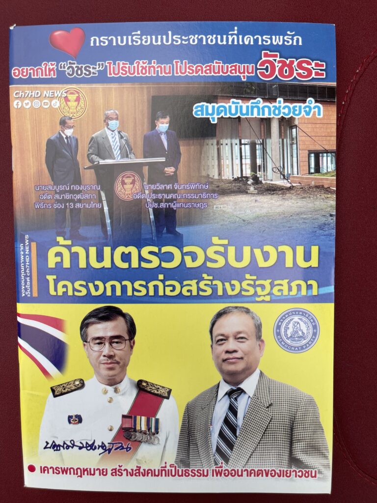 นายวัชระ ยังกล่าวถึง 3 เรื่องใหญ่ที่ตนได้ติดตามทวงถามความคืบหน้ามาตลอดคือ 1.คดีของนายตู้ห่าว ซึ่งถือเป็นผู้มีอิทธิพล กล้าพูดจาเหยียบย่ำเกียรติยศศักดิ์ศรีข้าราชการ คนไทยและหลักนิติธรรมของชาติ จากคำพูดที่บอกว่า “ใครมีเงินซื้อได้ทุกอย่าง คนไทยเข้าใจไหม ” รวมทั้งเรื่องการย้ายสถานีรถไฟหัวลำโพงที่เอกชนต้องการฮุบที่ดินเพื่อนำไปพัฒนาเชิงพาณิชย์ และเรื่องกิ๊ก สว.ที่คณะกรรมการจริยธรรม วุฒิสภา โดยพลเอกสิงห์ศึก สิงห์ไพร เคยบอกว่าการสอบสวนนายธานี อ่อนละเอียด จะแถลงในวันที่ 31 ธันวาคม 2565 ที่ผ่านมา แต่จนบัดนี้เป็นเวลาเกือบ 2 เดือนแล้ว ยังไม่มีความคืบหน้าใดๆ ดังนั้นจึงจัดทำเสื้อยืดพร้อมสมุด 1 เล่มออกมาจำหน่ายให้กับพี่น้องประชาชนทั่วไป เพื่อนำรายได้ไปใช้ในการเลือกตั้งในราคาชุดละ 100 บาท ซึ่งเสื้อดังกล่าวนี้มีครบทุกไซส์ ด้านหน้าสกรีนคำพูดของตู้ห่าวที่บอกว่า ใครมีเงินซื้อได้ทุกอย่าง คนไทยเข้าใจไหม แขนด้านขวาสกรีนว่า รักษาสถานีรถไฟหัวลำโพงตามรัชกาลที่ 5 และแขนด้านซ้ายเขียนว่า กิ๊ก ส.ว. ภาษีประชาชน เสื้อนี้จัดทำจำนวนจำกัดเพียง 2,000 ชุดเท่านั้น สำหรับพี่น้องประชาชนที่รักความเป็นธรรมทั่วประเทศ ติดต่อได้ที่วัชระ เพชรทอง สายตรง0809239991 หรือเพจข่าวสารจากอดีตส.ส.วัชระ ค่าจัดส่งฟรีทั่วประเทศ