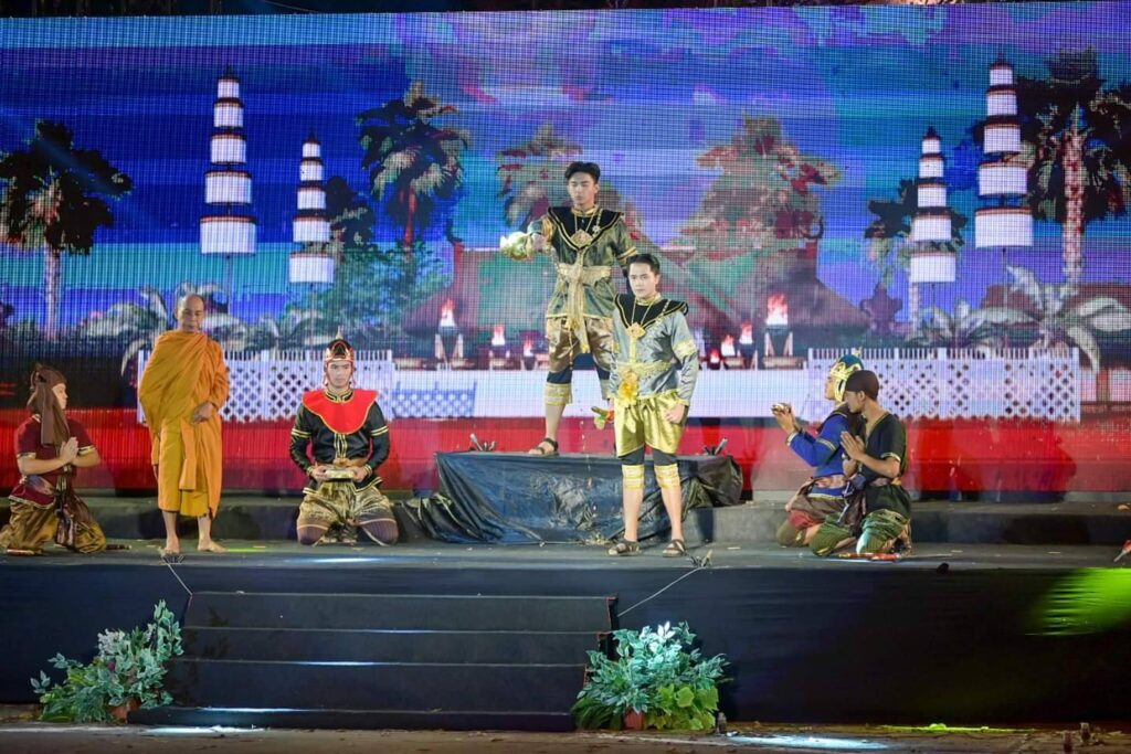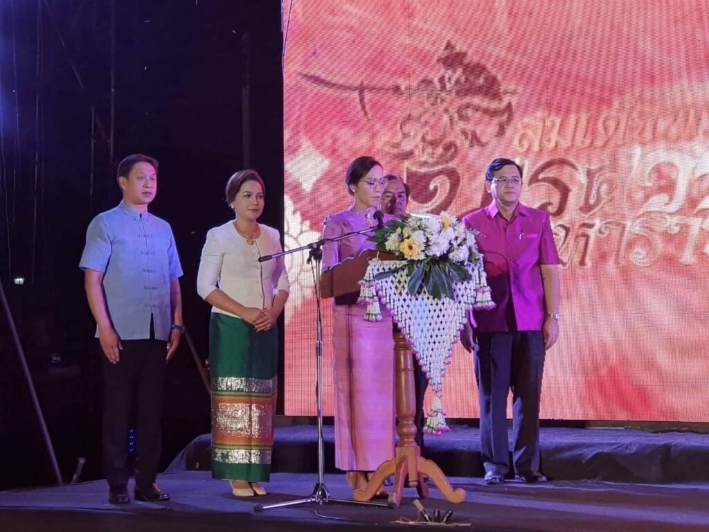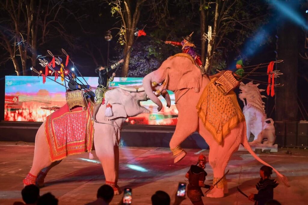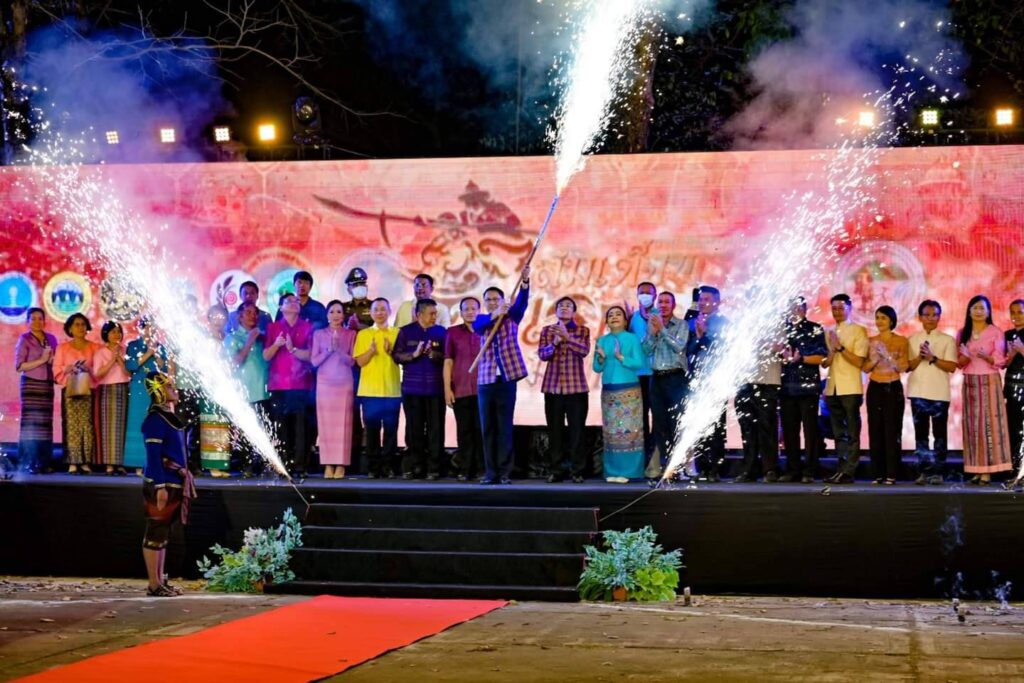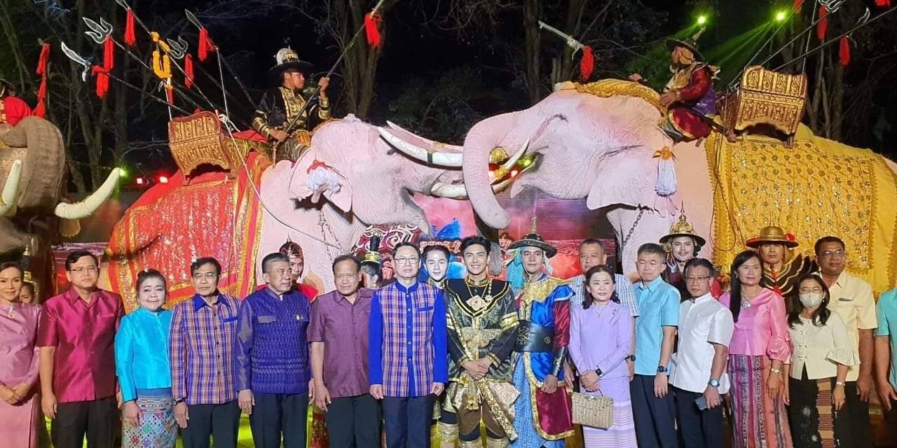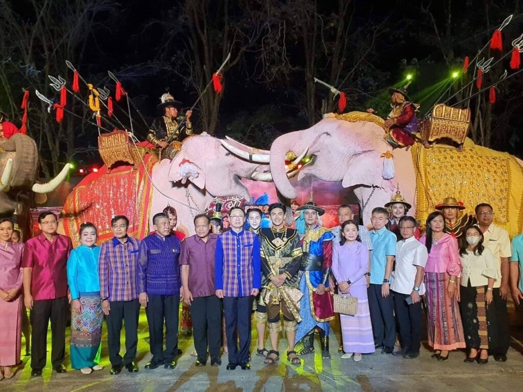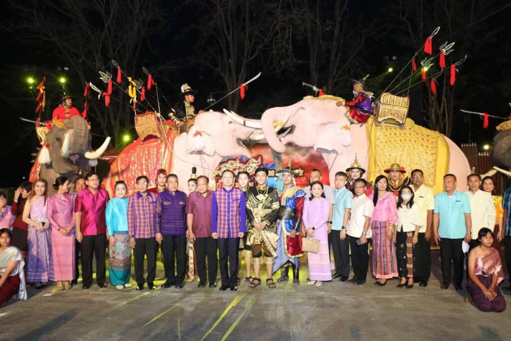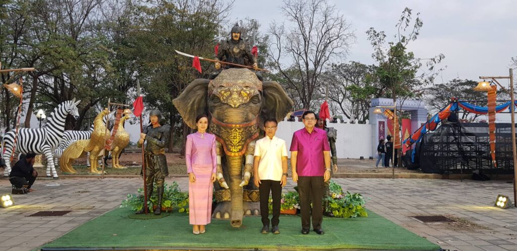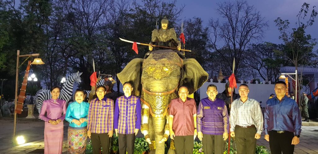 วันนี้ ( 17 กุมภาพันธ์ 2566 ) เวลา 18.30 น. ที่ ลานการแสดง แสง เสียง เทิดพระเกียรติสมเด็จพระนเรศวรมหาราช พระบรมราชานุสาวรีย์สมเด็จพระนเรศวรมหาราช ตำบลดอนเจดีย์ อำเภอพนมทวน จังหวัดกาญจนบุรี ร้อยโท ทศพล ไชยโกมินทร์ ผู้ว่าราชการจังหวัดกาญจนบุรี เป็นประธานเปิดงานเทิดพระเกียรติสมเด็จพระนเรศวรมหาราช พระบรมราชานุสาวรีย์สมเด็จพระนเรศวรมหาราช โดยมี นางสาวกิรดา ลำโครัตน์ ท่องเที่ยวและกีฬาจังหวัดกาญจนบุรี กล่าวรายงานวัตถุประสงค์ของการจัดงานฯ พร้อมด้วย นายรณภพ เวียงสิมมา ว่าที่ ร้อยตรี ศุภมงคล บูชาถ่ายเทศ นายศักรินทร์ ทุมเสน รองผู้ว่าราชการจังหวัดกาญจนบุรี หัวหน้าส่วนราชการ ผู้บริหารองค์การบริหารส่วนจังหวัดกาญจนบุรี นายอำเภอ นายกเทศมนตรีตำบลดอนเจดีย์ สภาอุตสาหกรรมท่องเที่ยวจังหวัดกาญจนบุรี สมาคมส่งเสริมการท่องเที่ยวกาญจนบุรี ประชาชน และนักท่องเที่ยว เข้าร่วมงานฯ