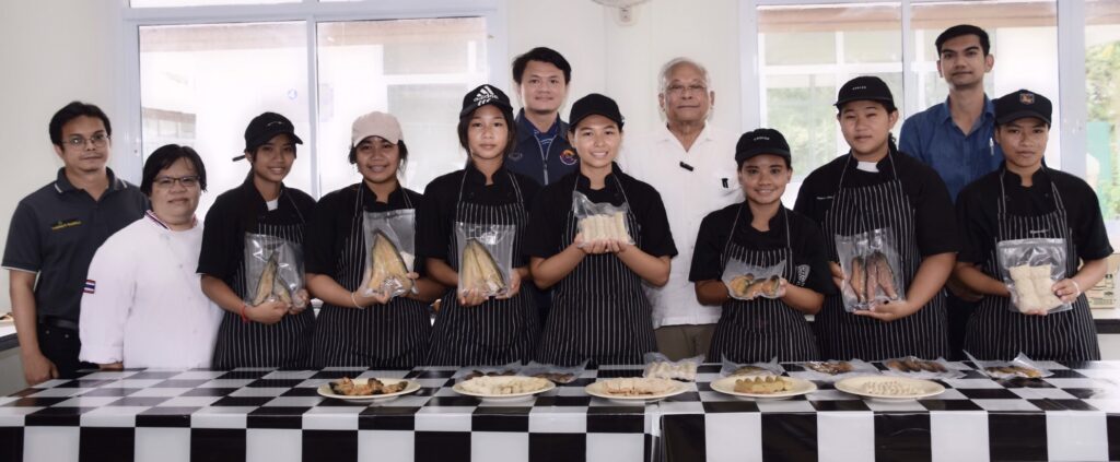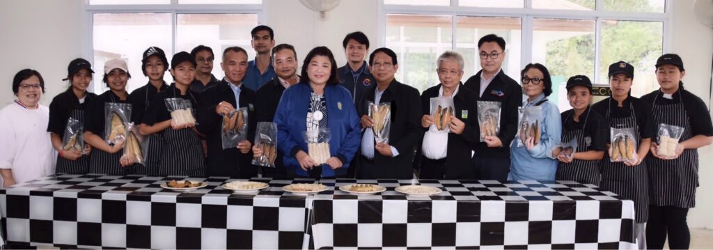-“การพัฒนาผลิตภัณฑ์ปลาน้ำจืดเพื่อการส่งเสริมเศรษฐกิจและสร้างอาชีพผ่านกระบวนการผลิตกุนเชียงปลาดุกไขมันต่ำในบรรจุภัณฑ์แบบสุญญากาศ” ดำเนินการโดย มหาวิทยาลัยเทคโนโลยีราชมงคลกรุงเทพ และ