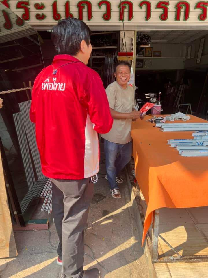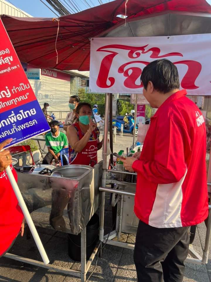 เสี่ยหน่องเดิน ไปขอคะแนนเสียงจากประชาชนในซอยนี้ ได้รับการต้อนรับอย่างอบอุ่น โดยชูนโยบายเศรษฐิจแย่ คนแก้ต้องเพื่อไทย เสียงตอบรับดีในตรอกนี้