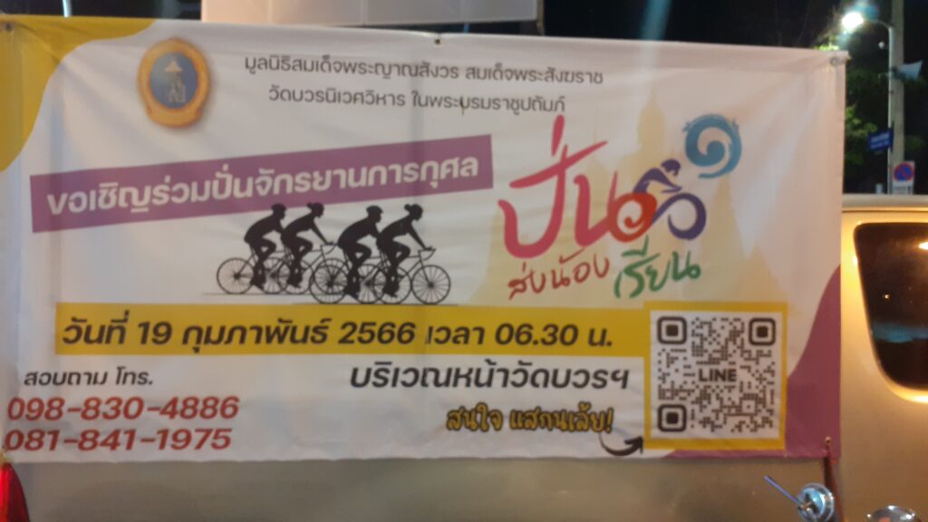 วันนี้ (19ก.พ.66) เวลา 05:30 น. นายศานนท์ หวังสร้างบุญ รองผู้ว่าราชการกรุงเทพมหานคร เป็นประธานกล่าวเปิดงานในกิจกรรมงานปั่นจักรยานการกุศล “ปั่นส่งน้องเรียน” ครั้งที่ 1 พร้อมทั้ง ปล่อยตัวขบวนนักปั่นจักรยานและร่วมปั่นจักรยาน บริเวณหน้าวัดบวรนิเวศวิหาร ถนนพระสุเมรุ เขตพระนคร กรุงเทพฯ