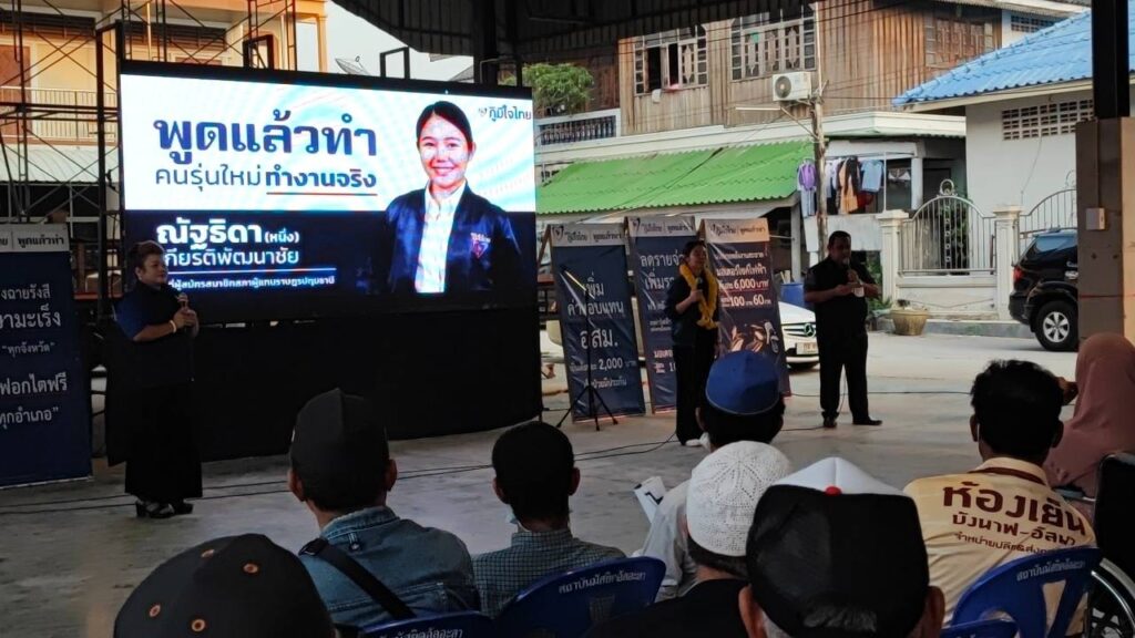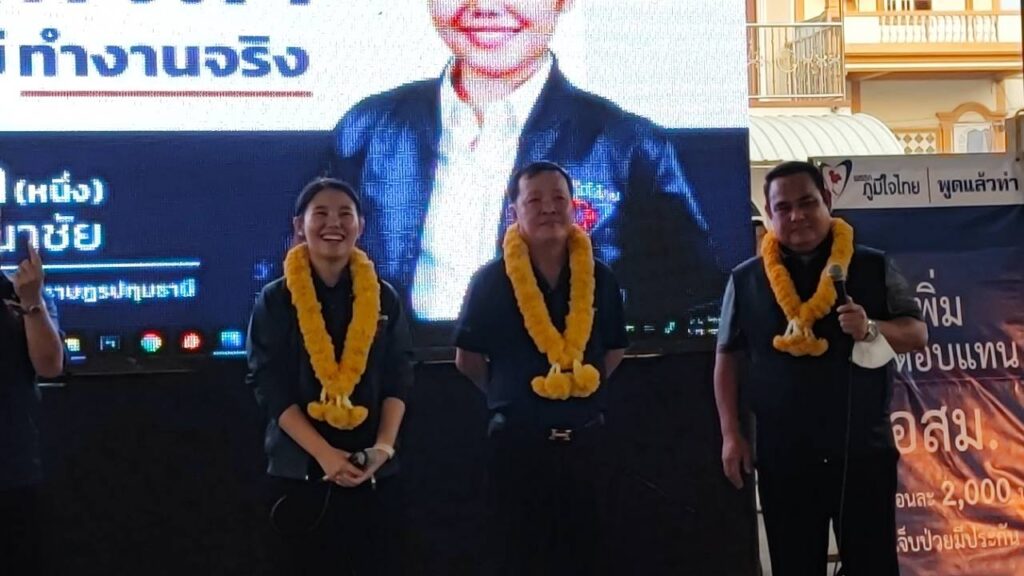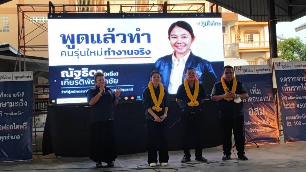 ด้านนางสาวณัฐธิดา เกียรติพัฒนาชัยหรือน้องหนึ่ง ว่าที่ผู้สมัครสมาชิกสภาผู้แทนราษฎรพรรคภูมิใจ ได้กล่าวชูนโยบายของพรรคภูมใจไทย เพิ่มค่าตอบแทนอสม.เป็นเดือนล่ะ 2,000 บาทเจ็บป่วยมีประกัน ลดรายจ่าย เพิ่มรายได้ฟรีหลังคาโซล่าเซลล์ลดค่าไฟฟ้าหลังคาเรือนล่ะ450บาทต่อเดือน มอเตอร์ไซค์ไฟฟ้าผ่อน100 บาท 60 งวด นโยบายพลังงานสะอาดมอเตอร์ไซค์ไฟฟ้าคันล่ะ 6,000 บาท พักหนี้3ปี หยุดต้นปลอดดอกเบี้ยคนล่ะเกิน1ล้านบาท เกษตรร่ำรวยรู้ราคาก่อนปลูก รับเงินก่อนขาย ข้าวขาว12,000 บาทต่อตัน ข้าวหอมมะลิ18,000 บาทต่อตัน มันสัมปะหลัง4บาทต่อกิโลกรัม ปาล์มทะลาย5บาทต่อกิโลกรัม น้ำยางสด 62บาทต่อกิโลกรัม ยางแผ่น 65บาทต่อกิโลกรัม เครื่องฉายรังสีรักษามะเร็งฟรีทุกจังหวัด ศูนย์ฟอกไตฟรีทุกอำเภอ.