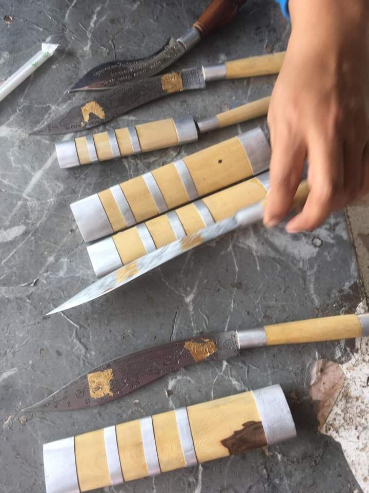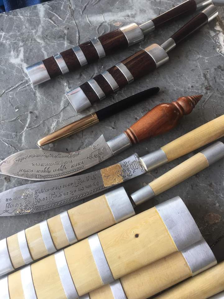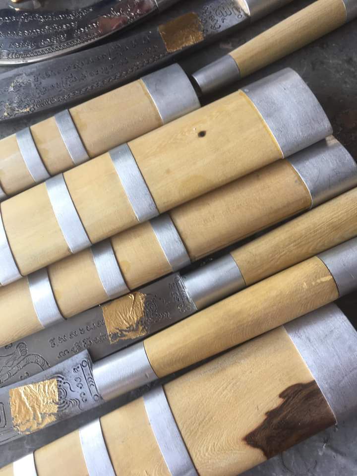 ส่วน.”แหม”.(แผ่นอลูมิเนียมที่รัดด้ามมีด/รัดฝักของมีด)ทำจากกิ่งของปีกเสาโทรทัศน์ที่เคยเห็นทั่วไป(ย้อนหลังราว 20 ปี).มีดทุกเล่มของ.หมอน้อย หรือของทายาทหมอน้อย จะมีอักขระเฉพาะ ของหมอน้อย เป็นสัญญลักษณ์ทุกเล่ม และยืนยันว่า.มีดทุกเล่มจากบ้านหมอน้อย ทำด้วยใจ มีความซื่อสัตย์ มีคุณธรรม ตามที่ลั่นวาจา รับปากไว้กับบรรพบุรุษ คือ พ่อแก่ หรือ หมอน้อย.