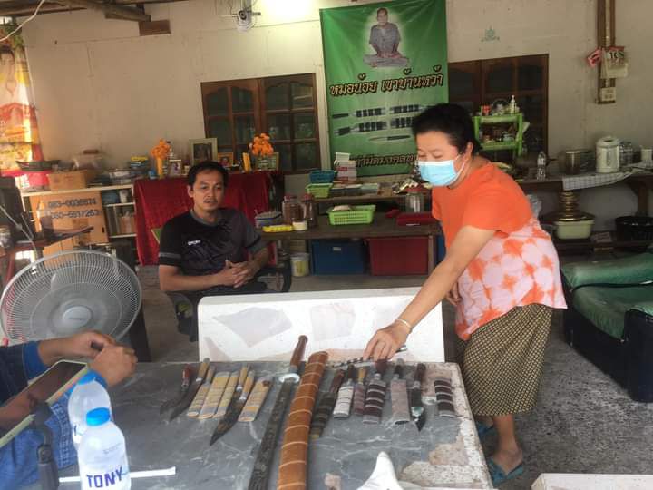 เดินทางไปยัง บ้านเขาบ้านหว้า เลขที่ 50 หมู่ 4 ต.เขาสมอคอน อ.ท่าวุ้ง จ.ลพบุรี ซึ่งเป็นบ้านของ นางนิตยา สอนเถื่อน(45ปี)และสามีคือนายสมนึก สอนเถื่อน(46ปี)โดยนางนิตยา เป็นทายาทรุ่นที่สาม ของ หมอน้อย หรือนายน้อย จันทร์อ่อน(90ปี/เสียชีวิตแล้วเมื่อปี 2544)หมอน้อย เป็นช่างตีมืด/ทำมีด ของหลวงพ่อบุญมี อดีตเกจิชื่อดังแห่งวัดเขาสมอคอน(มรณะภาพปี 2525)