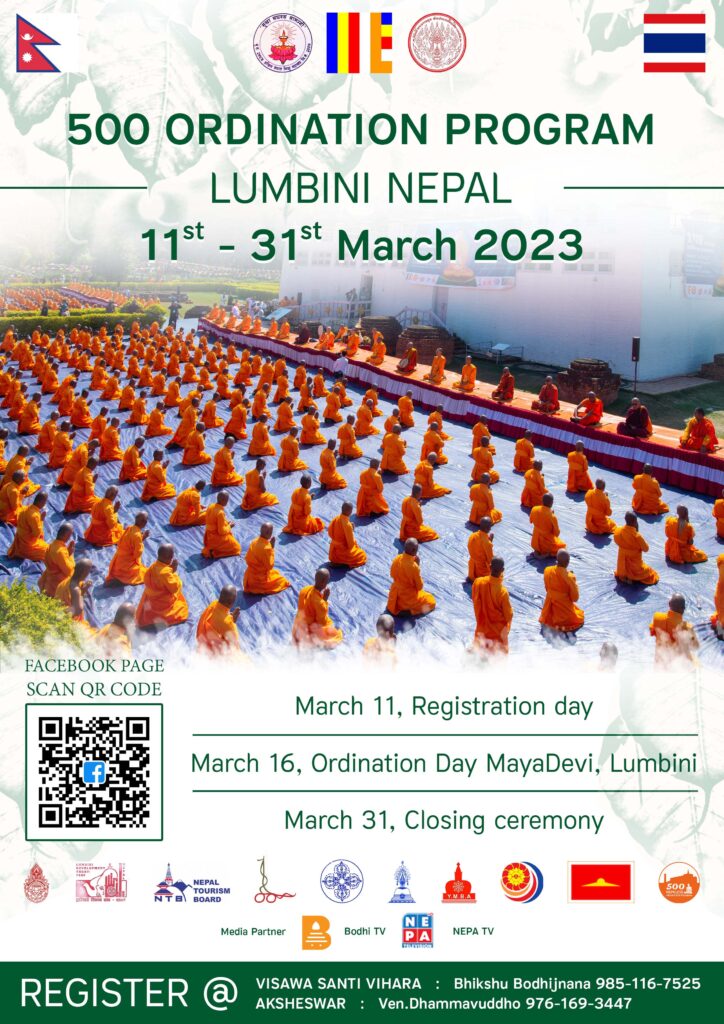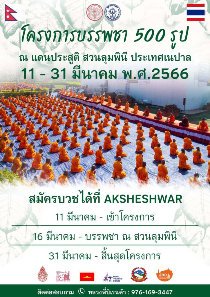 โดยเมื่อวันที่ 17 กุมภาพันธ์ พ.ศ. 2566 ที่ผ่านมา ที่วัดอเชสวอร์ มหาวิหาร ประเทศเนปาล คณะผู้แทนพระธรรมทูตไทย เเละคณะสงฆ์เนปาล องค์กรพุทธไทย, เนปาล กว่า 20 องค์กร ได้มีการจัดแถลงข่าว โครงการบรรพชาสามเณร 500 รูป ประเทศเนปาล ได้รับความเมตตาจากผู้แทนองค์กรต่าง ๆ ร่วมแถลงข่าว อาทิ พระถาวร ถาวโร ผู้แทนคณะพระธรรมทูตไทย-เนปาล วัดพระธรรมกาย และมูลนิธิธรรมกาย พระธรรมะคุปตะ เลขาธิการมหาเถรสมาคมเนปาล คุณตีระตาร์ สักกายะ ผู้แทนองค์การพุทธโลก คุณราเจช สักกายะ คณะกรรมการพัฒนาลุมพินี และคุณดีปัก สักกายะ ผู้แทนสมาคมวัดพุทธในเนปาล อีกทั้งองค์กรพุทธกว่า 20 องค์กรเข้าร่วมงาน