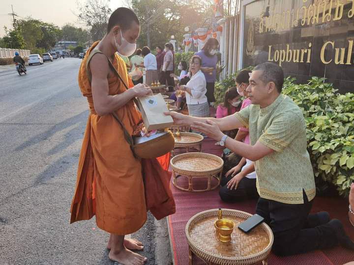 เข้าร่วมกิจกรรมตักบาตรข้าวสารอาหารแห้งโครงการถนนสายบุญนำสู่การสร้างสุข จัดโดยสำนักงานวัฒนธรรมจังหวัดลพบุรี เพื่อส่งเสริมให้พุทธศาสนิกชน ได้แสดงออกถึงความเอื้ออาทร แบ่งปัน ร่วมกันสืบทอดพระพุทธศาสนา และสืบสานวัฒนธรรมประเพณีที่ดีงาม