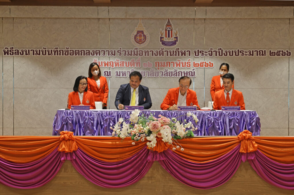 เมื่อวันที่ 16 กุมภาพันธ์ 2566 ศาสตราจารย์ ดร.สมบัติ ธำรงธัญวงศ์ รักษาการแทนอธิการบดีมหาวิทยาลัยวลัยลักษณ์ และนายไทยทนุ วรรณสุข เลขาธิการสมาคมกีฬาลอนเทนนิสแห่งประเทศไทย ในพระบรมราชูปถัมภ์ ลงนามในบันทึกข้อตกลงความร่วมมือทางด้านกีฬา ประจำปีงบประมาณ 2566 ระหว่างมหาวิทยาลัยวลัยลักษณ์ กับ สมาคมกีฬาลอนเทนนิสฯ โดยมี รองศาสตราจารย์ ดร.วรวุฒิ สมศักดิ์ รักษาการแทนรองอธิการบดีและ ผู้ช่วยศาสตราจารย์ ดร. มาริสา ภูมิภาค ณ หนองคาย รักษาการแทนผู้อำนวยการศูนย์ส่งเสริมวัฒนธรรมและการกีฬา ลงนามเป็นพยาน ท่ามกลางผู้บริหารและบุคลากรของทั้งสองฝ่ายร่วมเป็นสักขีพยาน ณ ห้องประชุมหัวตะพาน อาคารอำนวยการโรงพยาบาลศูนย์การแพทย์มหาวิทยาลัยวลัยลักษณ์