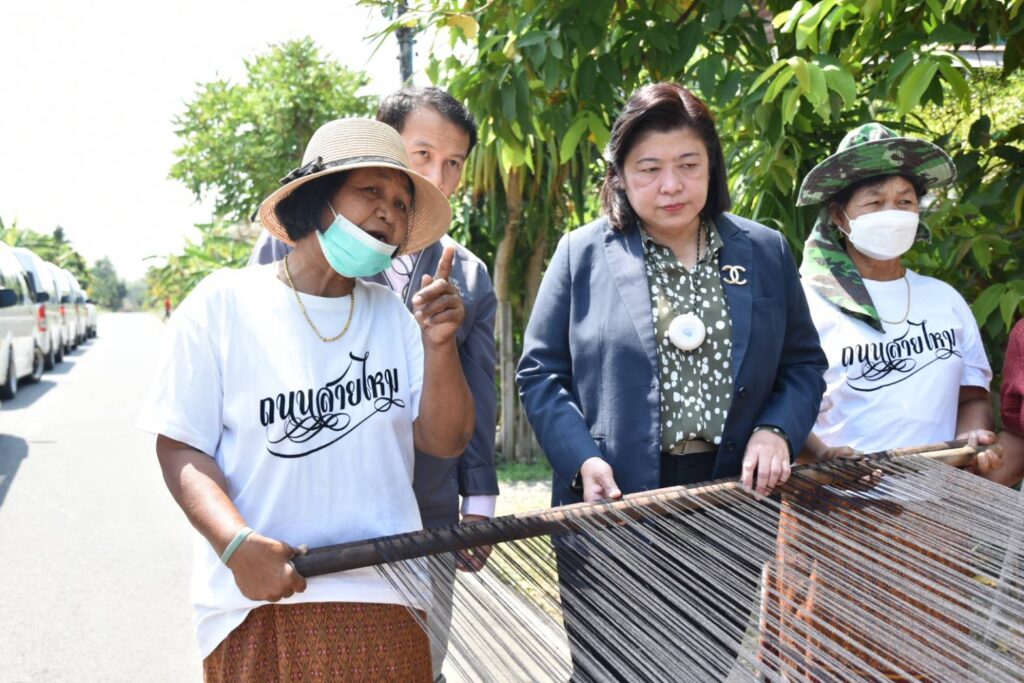 ดร.ศิวาพร พยัคฆนันท์ หัวหน้าโครงการฯ กล่าวว่า ชาวบ้านในชุมชนสวาย ประกอบอาชีพเกษตรกรรมโดยมีภูมิปัญญาที่สืบทอดจนเป็นกิจกรรมที่อยู่ในวิถีชุมชน และมีวิถีการทอผ้าไหมทอมือกี่โบราณ มีจำนวนครัวเรือนกว่า 1,500 ครัวเรือนเกี่ยวข้องกับกระบวนการทอผ้าไหม ผลงานเอกลักษณ์ของชุมชนคือ ผ้าไหมมัดหมี่ทอยกดอก 6 ตะกอ โดยเกิดจากความบรรจงในการมัดหมี่เป็นผ้าหลายร้อยลวดลายรวมกับเทคนิคการยกดอกและเพิ่มความประณีตด้วยการเก็บริมผ้า ทำให้ผ้าไหมชุมชนสวายเป็นผ้าไหมที่มีชื่อเสียง เป็นที่รู้จัก โดดเด่นด้านความสวยงามและคุณภาพจากวิถีวัฒนธรรมช่างทอได้พัฒนาเป็น “การท่องเที่ยวเชิงวัฒนธรรม” ร่วมจัดการท่องเที่ยวโดยเครือข่ายช่างทอ ผ่านโครงการยกระดับศักยภาพการท่องเที่ยวโดยชุมชนเชิงนวัตกรรมเพื่อสร้างคุณค่าอัตลักษณ์พื้นถิ่นด้วยภูมิปัญญาและนวัตกรรมบนฐานเศรษฐกิจ BCG ที่ (วช.) ให้การสนับสนุน ได้ช่วยขับเคลื่อนและยกระดับภูมิปัญญาของท้องถิ่นและนวัตกรรมบนฐานเศรษฐกิจ BCG สามารถผลักดันพื้นที่ต้นแบบชุมชนท่องเที่ยวเชิงวัฒนธรรม เศรษฐกิจฐานรากชุมชนเข้มแข็งอย่างยั่งยืน