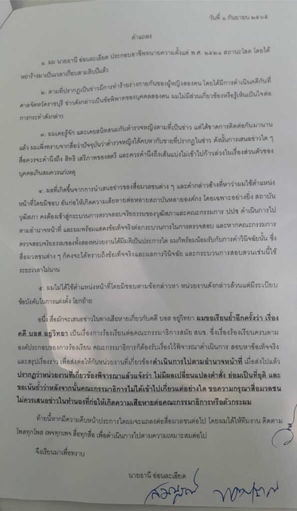 ต่อมาประธานวุฒิสภาได้ส่งเรื่องร้องเรียนดังกล่าวให้กับคณะกรรมการจริยธรรมวุฒิสภาเพื่อพิจารณาดำเนินการตามอำนาจและหน้าที่ตามกฎหมาย จนกระทั่งโฆษกคณะกรรมการฯ แถลงข่าวเมื่อวันที่ 20 กุมภาพันธ์ 2566 ที่รัฐสภาว่า ได้สรุปรายงานส่งให้ประธานวุฒิสภาเพื่อนำเข้าสู่ที่ประชุมวุฒิสภาพิจารณาต่อไปแล้ว ต่อมามีกระแสข่าวออกมาว่า ผลสรุปของคณะกรรมการจริยธรรมวุฒิสภา ได้เสนอลงโทษแค่ว่ากล่าวตักเตือนนายธานี อ่อนละเอียด สมาชิกวุฒิสภา จริงหรือไม่ ดังนั้นขอให้ประธานวุฒิสภาพิจารณาดำเนินการตามระเบียบว่าด้วยการยื่นเรื่องร้องเรียน การรับเรื่องร้องเรียน การนำเรื่องเข้าสู่การพิจารณาและวิธีพิจารณาของคณะกรรมการจริยธรรมวุฒิสภา พ.ศ. 2563 ข้อ 34 พร้อมขอเสนอว่า จะต้องเปิดเผยรายงานผลการพิจารณาของคณะกรรมการจริยธรรมวุฒิสภาต่อสาธารณชนภายใน 7 วัน และเร่งบรรจุเรื่องรายงานผลการพิจารณาของคณะกรรมการจริยธรรมวุฒิสภาต่อที่ประชุมวุฒิสภาพิจารณาให้ทันก่อนหมดสมัยประชุมวันที่ 28 กุมภาพันธ์ 2566 นี้ซึ่งประชาชนทั้งประเทศกำลังติดตามและรอฟังผลการพิจารณาดังกล่าวอย่างใกล้ชิด