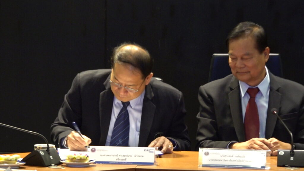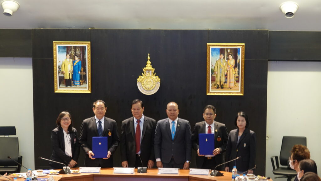 เมื่อเวลา 10.00 น. วันที่ 23 กุมภาพันธ์ 2566 ที่มหาวิทยาลัยเทคโนโลยีราชมงคลธัญบุรี (มทร.ธัญบุรี คลองหก) อำเภอธัญบุรี จังหวัดปทุมธานี นายวีระศักดิ์ วงษ์สมบัติ นายกสภามหาวิทยาลัยเทคโนโลยีราชมงคลธัญบุรี เป็นประธานพิธีลงนามบันทึกความร่วมมือ (Memorandum of Understanding) “การจัดการศึกษาและการสะสมหน่วยกิตในระบบธนาคารหน่วยกิต” ระหว่าง มหาวิทยาลัยเทคโนโลยีราชมงคลธัญบุรี และสำนักงานคณะกรรมการส่งเสริมการศึกษาเอกชน (สช.) โดยมี รองศาสตราจารย์สมหมาย ผิวสอาด อธิการบดีมหาวิทยาลัยเทคโนโลยีราชมงคลธัญบุรี และ นายประพัทธ์ รัตนอรุณ รองเลขาธิการคณะกรรมการส่งเสริมการศึกษาเอกชน สำนักงานคณะกรรมการส่งเสริมการศึกษาเอกชน ร่วมลงนาม