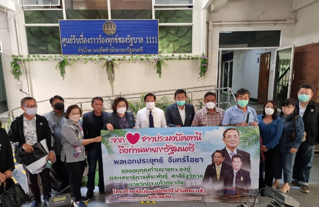 วันที่ 22 กุมภาพันธ์ 2566 ที่ศูนย์รับเรื่องราวร้องทุกข์ของรัฐบาล 1111 สำนักงานปลัดสำนักนายกรัฐมนตรี สมาคมการประมงปัตตานี นำโดย นางอันน์เกตุ ลีลาไพบูลย์ นายกสมาคมการประมงจังหวัดปัตตานี พร้อมคณะของสมาคมฯและตัวแทนชาวประมงในจังหวัดปัตตานี โดยมีดร.หิมาลัย ผิวพรรณ ผู้ประสานงานได้เดินทางมาเพื่อแสดงความขอบคุณ พล.อ.ประยุทธ์ จันทร์โอชา นายกรัฐมนตรี ผ่าน นายพีระพันธุ์ สาลีรัฐวิภาค เลขาธิการนายกรัฐมนตรี ในฐานะประธานคณะกรรมการอำนวยความเป็นธรรมและเร่งรัดการปฏิบัติราชการหลังคณะรัฐมนตรี (ครม.) ได้พิจารณาอนุมัติงบประมาณรายจ่ายประจำปี พ.ศ.2566 งบกลาง ในรายการเงินสำรองจ่ายเพื่อกรณีฉุกเฉิน หรือจำเป็น สำหรับเป็นค่าใช้จ่ายช่วยเหลือเยียวยาซื้อเรือประมงในพื้นที่จังหวัดปัตตานี ในโครงการนำเรือประมงออกนอกระบบเพื่อการจัดการทรัพยากรประมงทางทะเลที่ยั่งยืน ในพื้นที่จังหวัดชายแดนใต้เป็นกรณีเร่งด่วน