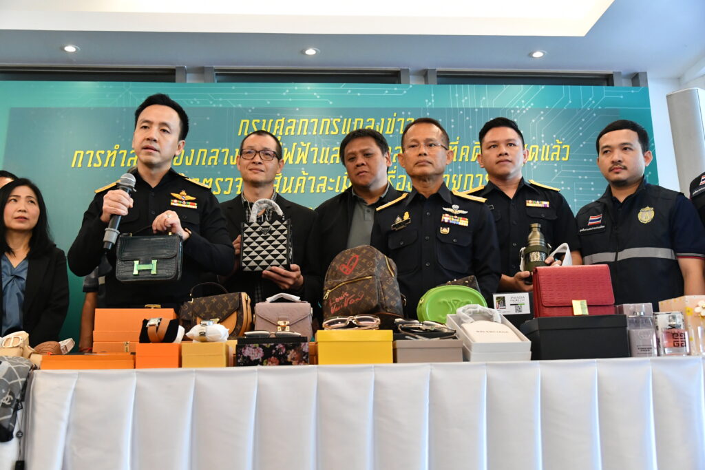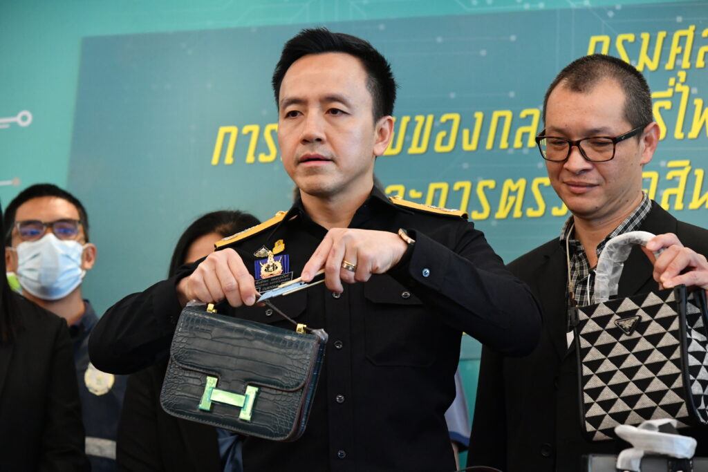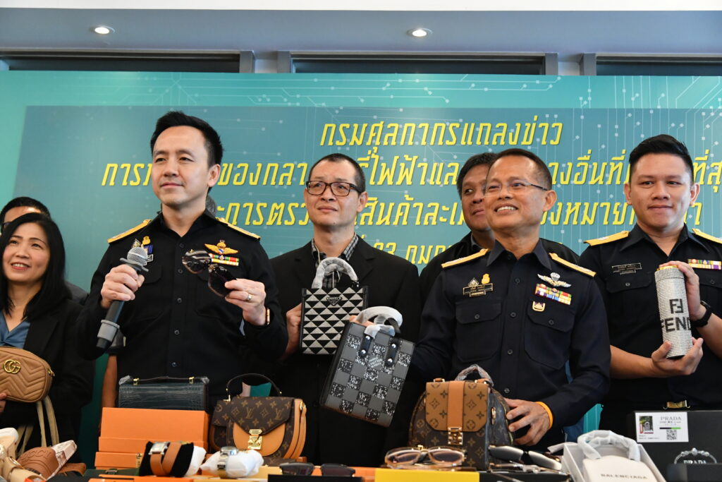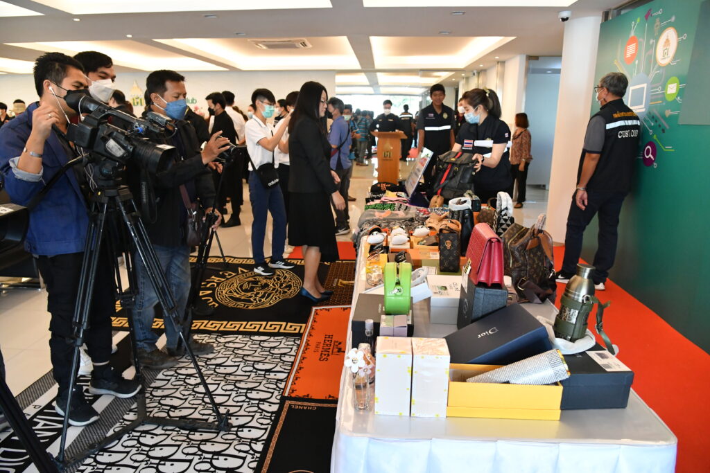 วันที่ 23 กุมภาพันธ์ 2566 เวลา 10.30 น. : นายพันธ์ทอง ลอยกุลนันท์ รองอธิบดีกรมศุลกากร รักษาการในตำแหน่งที่ปรึกษาด้านการพัฒนาและบริหารการจัดเก็บภาษี ในฐานะโฆษกกรมศุลกากร แถลงข่าวการตรวจยึดสินค้าลักลอบหนีศุลกากรซึ่งเป็นสินค้าที่ละเมิดละเมิดเครื่องหมายทางการค้า อาทิ เสื้อผ้า กระเป๋าและรองเท้า มูลค่าความเสียหายทางเศรษฐกิจกว่า 150 ล้านบาท