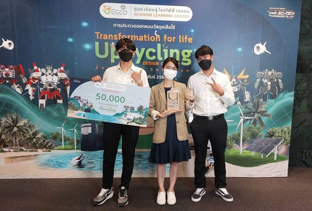 นักศึกษาสถาปัตยกรรมศาสตร์และการออกแบบ ม.วลัยลักษณ์ คว้ารางวัลชนะเลิศระดับประเทศ การประกวดออกแบบวัสดุเหลือใช้ “Transformation for Life” Upcycling Design Contest : Zero Waste Solution ได้รับถ้วยพร้อมเงินรางวัล 50,000 บาท
