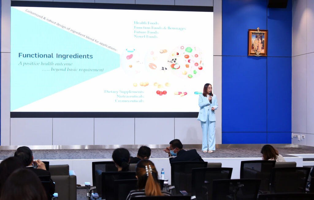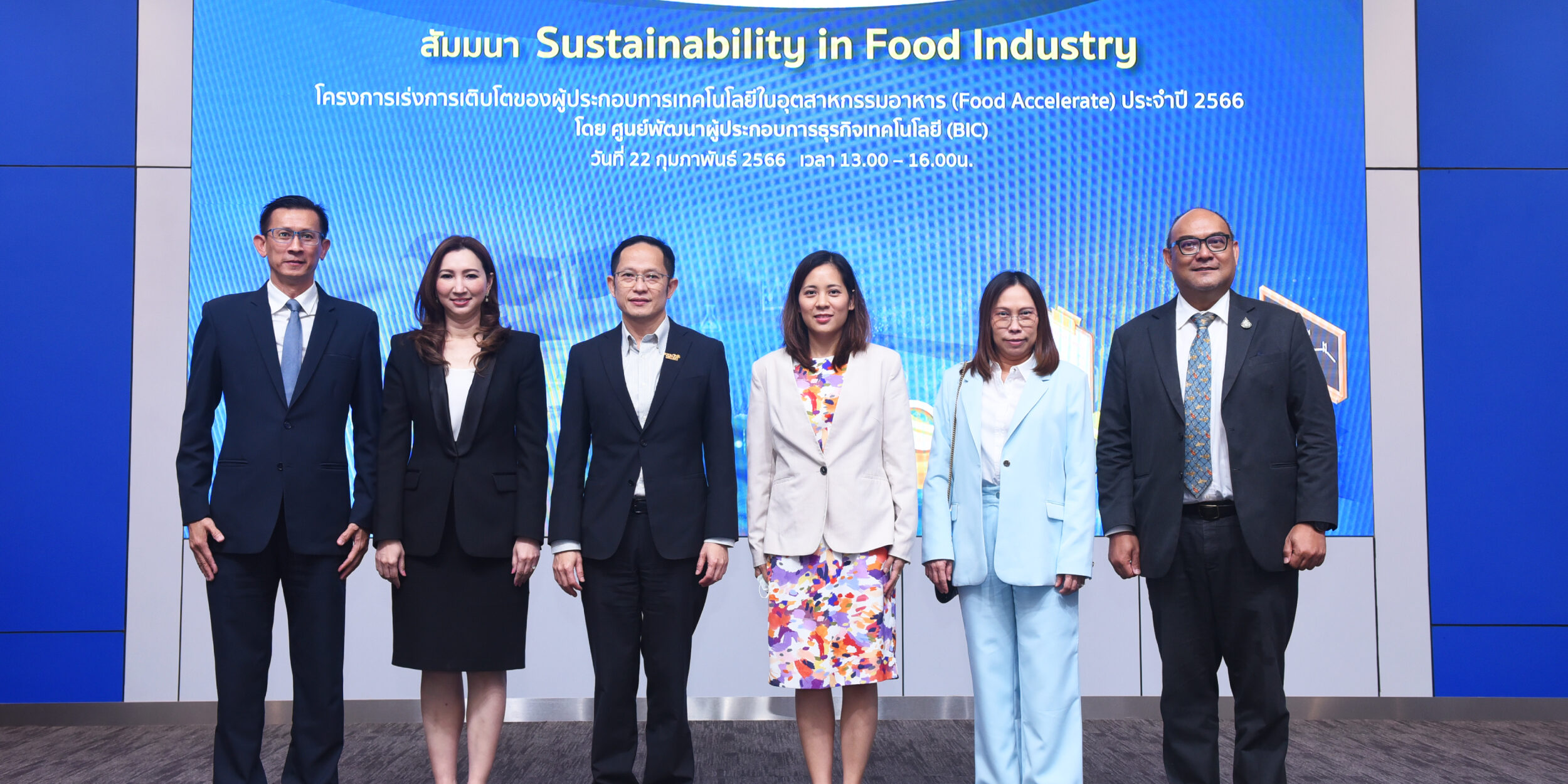 เมื่อวันที่ 22 กุมภาพันธ์ 2566 ณ ห้องแถลงข่าว อาคารพระจอมเกล้า : กระทรวงการอุดมศึกษา วิทยาศาสตร์ วิจัยและนวัตกรรม (อว.) สำนักงานพัฒนาวิทยาศาสตร์และเทคโนโลยีแห่งชาติ (สวทช.) โดย ศูนย์บริหารจัดการเทคโนโลยี (TMC) จัดงานสัมมนาหัวข้อ “Sustainability in Food Industry” เพื่อให้ความรู้และแชร์ประสบการณ์แก่ผู้ประกอบการ ในการปรับตัวให้เข้ากับสถานการณ์ที่เปลี่ยนแปลงไปของธุรกิจอุตสาหกรรมอาหาร อีกทั้งให้แนวคิด เทคนิคต่างๆ ในการพัฒนาธุรกิจนวัตกรรมอาหาร เพื่อรับมือกับความท้าทาย ในสถานการณ์ Covid-19 โดยภายในกิจกรรมสัมมนาได้รับเกียรติจาก ดร.อดิสร เตือนตรานนท์ ผู้ช่วยผู้อำนวยการ (สวทช.) เป็นประธานเปิดงาน