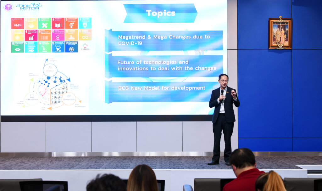 ผู้ช่วยผู้อำนวยการ (สวทช.) กล่าวเพิ่มเติมว่า จากสถานการณ์ปัจจุบันที่เกิดขึ้น ทำให้พบว่ากลุ่มธุรกิจอุตสาหกรรมอาหารเป็นกลุ่มที่สำคัญ และมีแนวโน้มที่จะเติบโตอย่างต่อเนื่อง ในปี 2566 จากการฟื้นตัวของเศรษฐกิจโลก ส่งผลให้การส่งออกสินค้าอาหารมีแนวโน้มขยายตัว หลายประเทศนำเข้าอาหารมากขึ้น ภาคการท่องเที่ยวและการบริโภคภาคเอกชนฟื้นตัว มีการเจรจาทางการค้ากับตลาดใหม่ๆ มากขึ้น โดยสำหรับในปี 2566 หอการค้าไทยได้บูรณาการข้อมูลประเมินแนวโน้มคาดการณ์ส่งออกสินค้าอาหารของไทยจะเติบโตที่ 0-2% หรือ มีมูลค่า 1.50-1.53 ล้านล้านบาท จากข้อมูลดังกล่าวทำให้ (สวทช.) มุ่งมั่น และเห็นความสำคัญ ในการผลักดัน สนับสนุนผู้ประกอบการธุรกิจอุตสาหกรรมอาหาร และอุตสาหกรรมอื่นๆ โดยได้จัดโครงการเร่งการเติบโตผู้ประกอบการเทคโนโลยีในอุตสาหกรรมอาหาร ให้มีการเพิ่มรายได้ในระดับสูง หรือ Food Acceleration Program เป็นโครงการที่เสริมสร้างศักยภาพของผู้ประกอบการเทคโนโลยี รายใหม่ให้สามารถพัฒนาผลิตภัณฑ์นวัตกรรมอาหารที่มีมูลค่าสูง เพื่อเร่งการเติบโตทางธุรกิจให้แก่ผู้ประกอบการเทคโนโลยีรายใหม่ สร้าง platform เครือข่ายความร่วมมือและการเข้าถึงผู้เชี่ยวชาญตลอดจนเพิ่มขีดความสามารถในการแข่งขันด้านการตลาดและสร้างโอกาสในการขยายธุรกิจ ทั้งนี้ (สวทช.) ยังได้มีการให้บริการแก่ผู้ประกอบการอีกหลายด้าน จากหลายทีมงานของ (สวทช.) ได้แก่