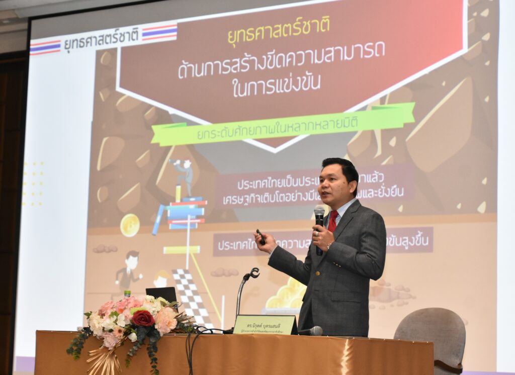 “ปัจจุบันมีแนวโน้มการเปลี่ยนแปลงที่สำคัญของโลกในเรื่องการขยายตัวของความเป็นเมือง การเปลี่ยนขั้วอำนาจเศรษฐกิจของโลก การเสื่อมโทรมของสิ่งแวดล้อมและการขาดแคลนทรัพยากร ความเหลื่อมล้ำและความไม่เสมอภาคทางสังคม สังคมสูงวัย และนวัตกรรมพลิกโฉม โดย (วช.) ได้นำเอาการจัดการความรู้การวิจัยถ่ายทอดเพื่อการใช้ประโยชน์ มาช่วยในการสร้างกลไกเชื่อมโยงหรือส่งต่อผลงานวิจัยและนวัตกรรมที่นักวิจัยทั้งในสถาบันการศึกษาระดับอาชีวศึกษาหรืออุดมศึกษา รวมทั้งหน่วยงานต่างๆ ไปยังกลุ่มเป้าหมายเพื่อการใช้ประโยชน์ทั้งในภาคชุมชน สังคม นโยบายและความมั่นคง สามารถตอบโจทย์แผนยุทธศาสตร์ที่สำคัญของประเทศและเพิ่มขีดความสามารถการแข่งขันในเวทีระดับนานาชาติและก้าวทันการเปลี่ยนแปลงของโลกได้” ดร.วิภารัตน์ ดีอ่อง (ผวช.) กล่าวในการปาฐกถาพิเศษ เรื่อง “พัฒนาคน พัฒนาอาชีวะ : เพื่อการพัฒนาประเทศอย่างยั่งยืน”