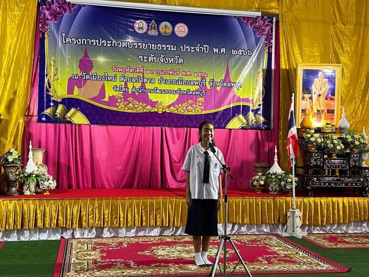 วันพฤหัสบดีที่ 23 กุมภาพันธ์ 2566 เวลา 09.00 น. นางเพชรรัตน์ เลิศรัตน์ รองผู้ว่าราชการจังหวัดลพบุรี เป็นประธานในพิธีเปิดโครงการประกวดบรรยายธรรม ประจำปี พ.ศ. 2566 ระดับจังหวัด ณ วัดเมืองใหม่ อำเภอเมืองลพบุรี จังหวัดลพบุรี ดำเนินการโดยสำนักงานวัฒนธรรมจังหวัดลพบุรี