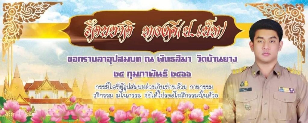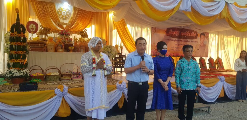 วันศุกร์ที่ 24 กุมภาพันธ์ 2566 นายอนุ ทองดีประชาสัมพันธ์จังหวัดกาญจนบุรี และนางบุญนาค ทองดี ได้จัดพิธีอุปสมบทนายรัตนชาติ ทองดี (ป.เน็ท) ปลัดอำเภอเลาขวัญบุตรชาย ณ สวนป่า จุฑามชาติ ในการนี้ นายจิระเกียรติ ภูมิสวัสดิ์ (ผู้ว่าใหม่) อดีตผู้ว่าราชการจังหวัดกาญจนบุรี และนางรชยา ภูมิสวัสดิ์ (อดีตนายกเหล่ากาชาดจังหวัดกาญจนบุรี)ได้เดินทางมาร่วมงานครั้งนี้ด้วย เช้าวันที่ 25 เพื่อนำนาคไปอุปสมบท