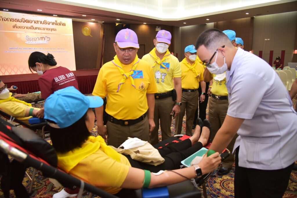 ในวันนี้ วันที่ 24 ก.พ.66 เวลา 09.00 น. พื้นที่กรุงเทพมหานคร จัดกิจกรรมที่โรงพยาบาลตำรวจ ส่วนต่างจังหวัดให้แต่ละหน่วยประสานสาธารณสุขจังหวัดจัดกิจกรรม โดยเชิญข้าราชการตำรวจและประชาชนจิตอาสาร่วมกันบริจาคโลหิตเพื่อถวายเป็นพระราชกุศล มีผู้เข้าร่วมบริจาคโลหิตทั่วประเทศ จำนวน 9,407 ราย เป็นข้าราชการตำรวจจิตอาสา 7,621 ราย ประชาชนจิตอาสา 1,786 ราย
