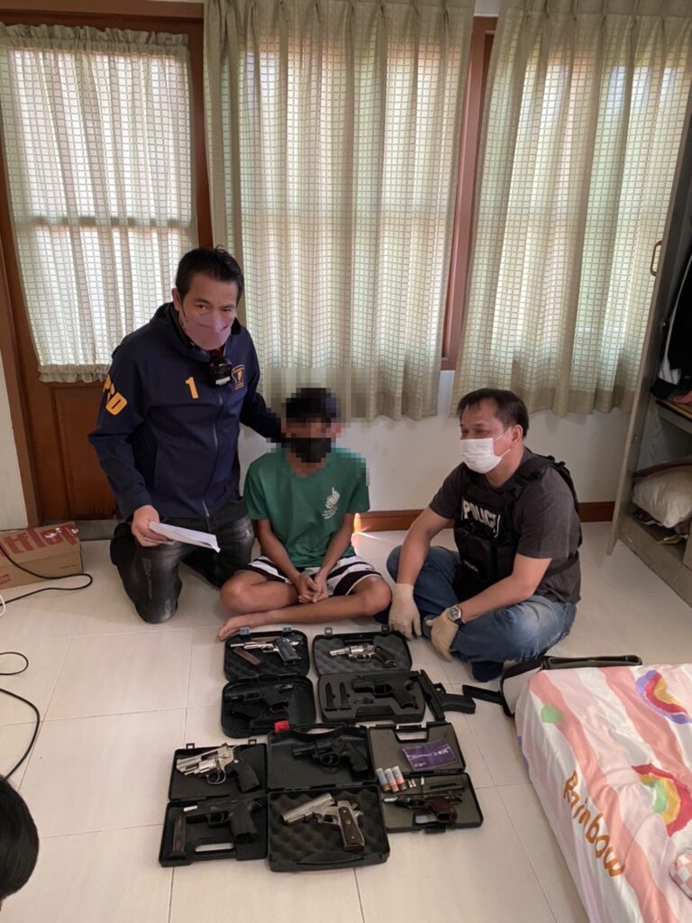 ได้จับกุมตัว จับกุมผู้ต้องหา คือนายธนวัฒน์ หรือบังนัด ขอสงวนนามสกุล อายุ 17 ปี ตรวจยึด ภายในบ้านเลขที่ 77 ซ.รามคำแหง 182 แขวงมีนบุรี เขตมีนบุรี กรุงเทพฯ โดยต้องหาว่ากระทำความผิดฐาน “มีอาวุธปืนและเครื่องกระสุนปืนไว้ในครอบครองโดยไม่ได้รับอนุญาต”