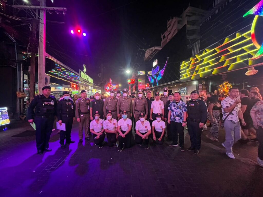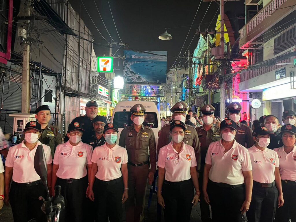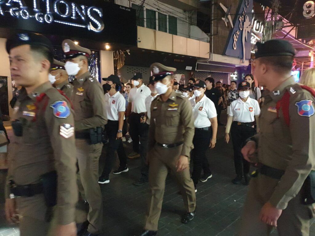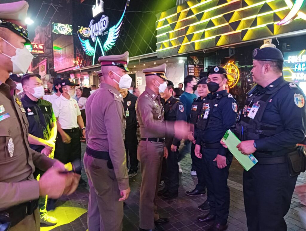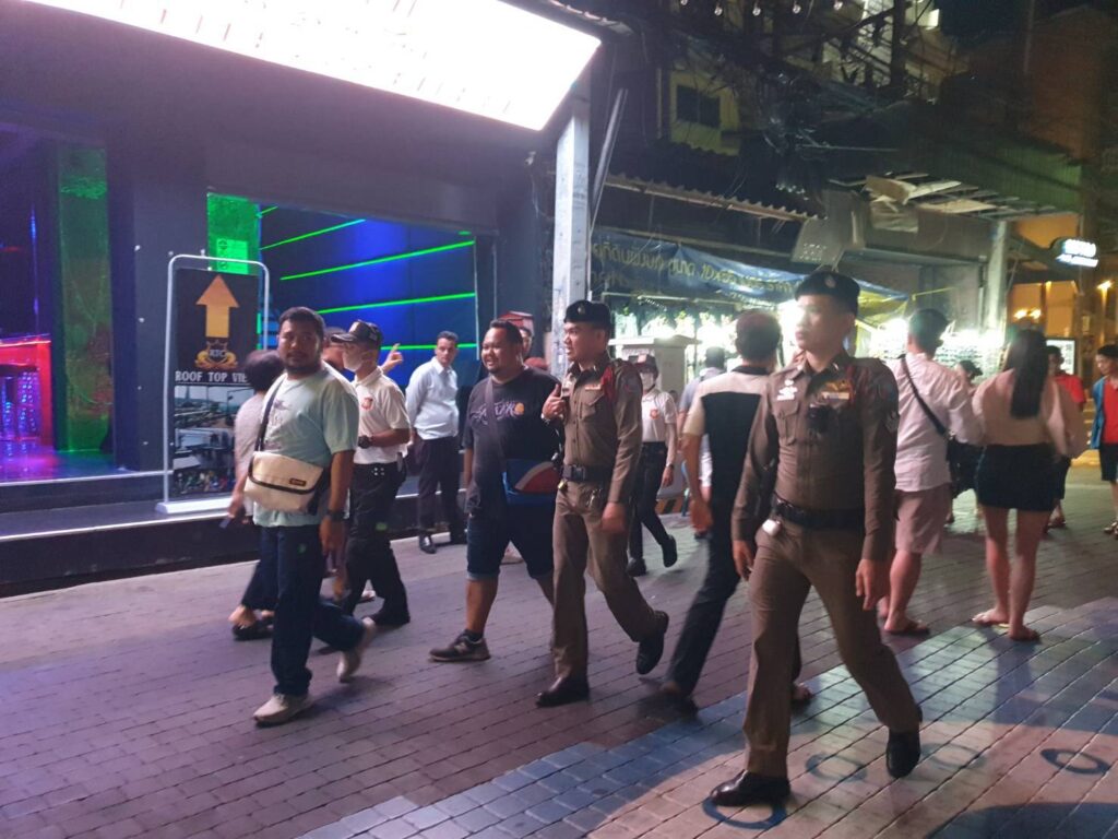 พร้อมทั้งกำลังเจ้าหน้าที่ตำรวจ สภ.เมือง พัทยา กำลังตำรวจท่องเที่ยวพัทยา พ.ต.ท. พิชญะ เขียวเปลื้อง สว.ส.ทท.4 กก.2 และกำลังอาสาตำรวจท่องเที่ยวพัทยา พ.อ.อ. ฤทธิรณ สุขเกษม , นายสกันต์ จันทรางกูร หัวหน้าเจ้าหน้าที่เทศกิจ กิจเมือง พัทยา (ฝ่ายรักษาความสงบ) ร่วมบูรณาการจัดระเบียบสถานบริการในพื้นที่เมืองพัทยา ตามนโยบายผู้บังคับบัญชา ตามโครงการ 5 ปลอด คือ