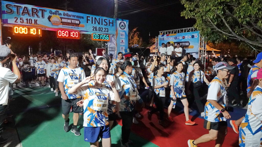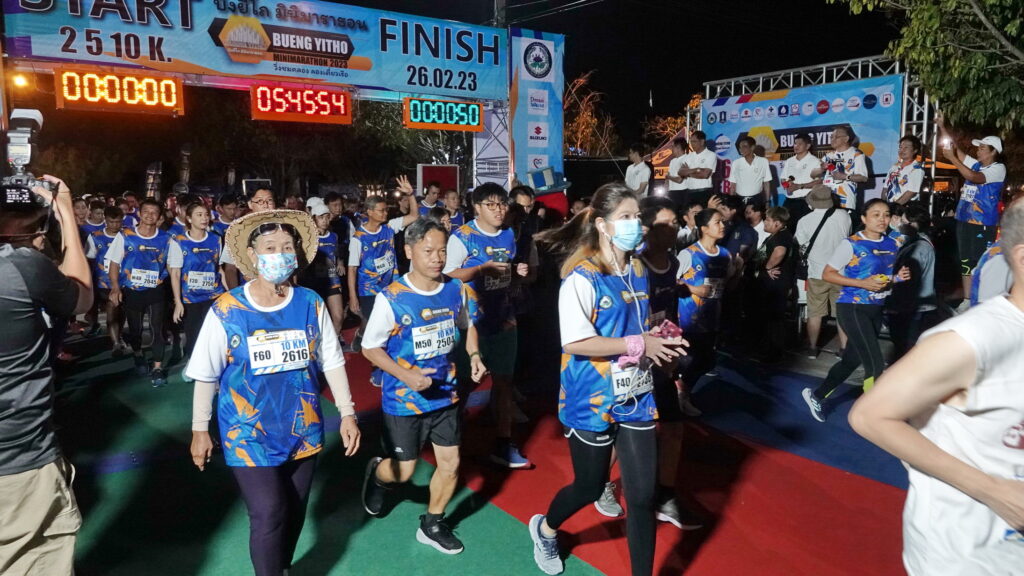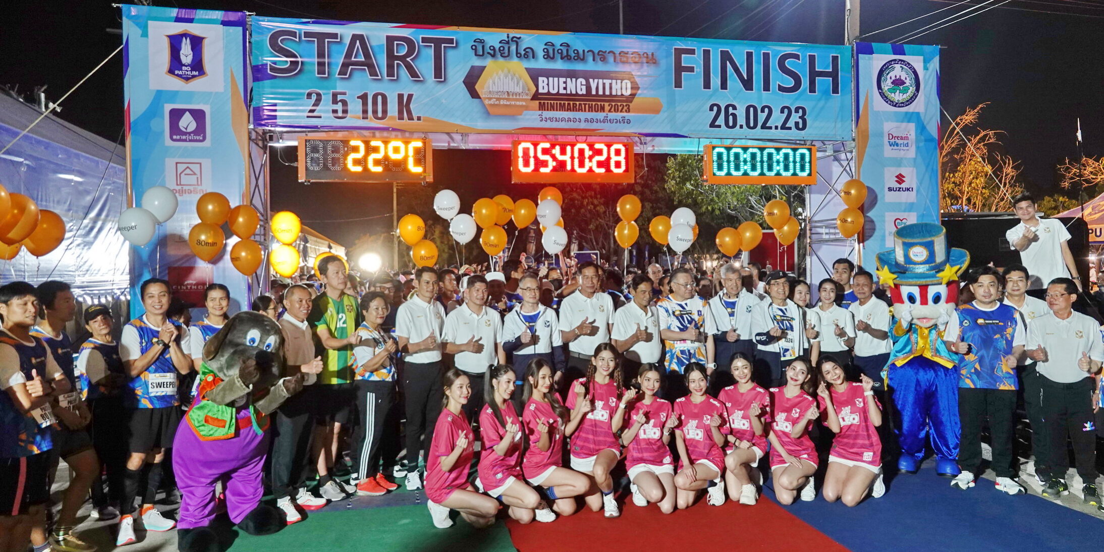 เมื่อเวลา 06.00 น. วันที่ 26 กุมภาพันธ์ 2566 ที่สวนสนุกดรีมเวิลด์ ตำบลบึงยี่โถ อำเภอธัญบุรี จังหวัดปทุมธานี พล.ต.ท.คำรณวิทย์ ธูปกระจ่าง นายก อบจ.ปทุมธานี เป็นประธานเปิดกิจกรรมเดินวิ่งเพื่อสุขภาพ บึงยี่โถมินิมาราธอน วิ่งชมคลอง ลองเตี๋ยวเรือ โดยมี นายรังสรรค์ นันทกาวงศ์ นายกเทศมนตรีเมืองบึงยี่โถ กล่าวรายงานวัตถุประสงค์การจัดงาน มีประชาชนร่วมกิจกรรมจำนวน 2,150 คน รายได้มอบให้มูลนิธิข้างเตียงเคียงกัน เพื่อการแบ่งปันความสุขสู่สังคม เพื่อคนสูงวัย คนไข้ติดเตียงและคนไร้ที่พึ่ง
