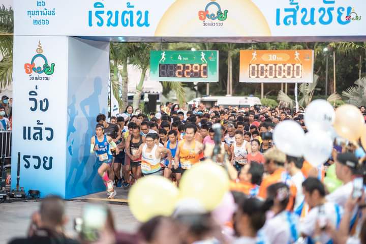 เมื่อเวลา 06.00 น. วันที่ 26 กุมภาพันธ์ 2566 ที่บริเวณลานอุทยานอนุสรณ์ 100 ปี หลวงพ่อรวยองค์ใหญ่ วัดตะโก อำเภอภาชี จังหวัดพระนครศรีอยุธยา นายนิวัฒน์ รุ่งสาคร ผู้ว่าราชการจังหวัดพระนครศรีอยุธยา เป็นประธานเปิดการแข่งขันกิจกรรม “วิ่งแล้วรวย” พร้อมมอบรางวัลให้แก่ผู้ชนะการแข่งขันวิ่ง โดยมี นางวัชราภรณ์ รุ่งสาคร ประธานแม่บ้านมหาดไทยจังหวัดพระนครศรีอยุธยา พลตรี อภิชัย วิไลเนตร ผู้บัญชาการมณฑลทหารบกที่ 18 พร้อมภริยา นางสมทรง พันธ์เจริญวรกุล นายกองค์การบริหารส่วนจังหวัดพระนครศรีอยุธยา นายแพทย์ยุทธนา วรรณโพธิ์กลาง นายแพทย์สาธารณสุขจังหวัด นายวิรัติ แข็งขัน ท่องเที่ยวและกีฬาจังหวัด นายบุญเชิด กิตติธรางกูร ผู้อำนวยการสำนักงานพระพุทธศาสนาจังหวัด นางพิศมัย เลิศอิทธิบาท ประชาสัมพันธ์จังหวัด นางสาวอภิสรา เกษอินทร์ นายอำเภอภาชี นายสเกน จันทร์ผดุงสุข นายกเทศบาลตำบลภาชี แขกผู้มีเกียรติ และนักวิ่งเข้าร่วมงานกว่า 2,000 คน โดยได้รับเมตตาจาก พระครูปลัดสุวัฒนเถรคุณ (ธรรมทส ขนฺติพโล ป.ธ.4) พระอาจารย์แก้ว รองเจ้าคณะอำเภอภาชี เจ้าอาวาสวัดตะโก และคณะสงฆ์วัดตะโก ประพรมน้ำพระพุทธมนต์ และสวดเจริญชัยมงคลคาถา เพื่อความเป็นสิริมงคล