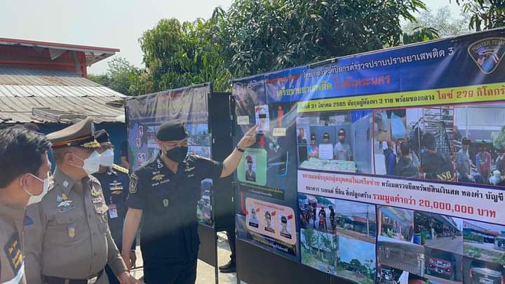 โดยในเวลา 10.00 น พล.ต.อ.ชินภัทร สารสิน รอง ผบ.ตร.(กม)/ผอ.ศอ.ปส.ตร., นายนิวัฒน์ รุ่งสาคร ผู้ว่าราชการจังหวัดพระนครศรีอยุธยา/ พล.ต.ท.ประจวบวงศ์สุข ผช.ผบ.ตร/รอง ผอ.ศอ.ปส.ตร, พล.ต.ท.สรายุทธ สงวนโภคัย ผบช.ปส., พล.ต.ต.คมสิทธิ์ รังไสย์ ผบก.ปส.3, ร่วมแถลงข่าวการจับกุมกลุ่มเครือข่ายผู้ายาเสพติดรายใหญ่ 3 เครือข่าย ตั้งแต่ เมื่อปี 2565 ที่ผ่านมา คือ