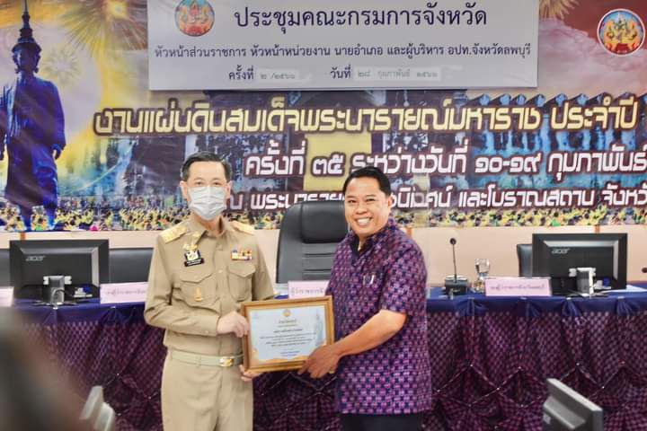 วันที่ 28 กุมภาพันธ์ 2566 เวลา 08.30 น. นางสายใจ เลิศวิริยะประภา นายกเทศมนตรีเมืองเขาสามยอด มอบหมายให้นายสินชัย ขวัญเขียว ปลัดเทศบาลเมืองเขาสามยอด เข้ารับเกียรติบัตรจาก นายอำพล อังคภากรณ์กุล ผู้ว่าราชการจังหวัดลพบุรี เพื่อแสดงว่าเทศบาลเมืองเขาสามยอด ได้ให้การสนับสนุนการจัดงานแผ่นดินสมเด็จพระนารายณ์มหาราช ประจำปี 2566
