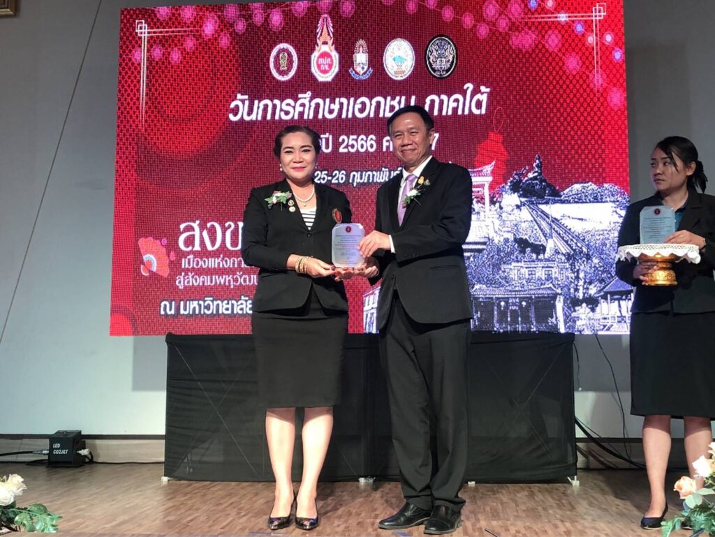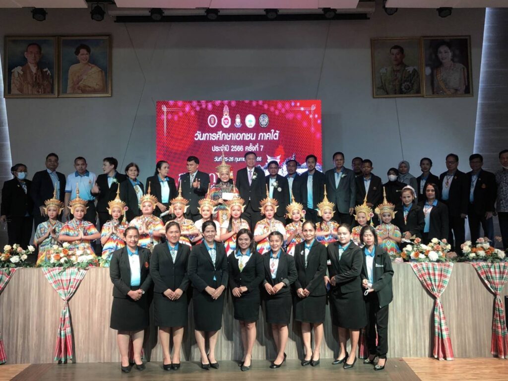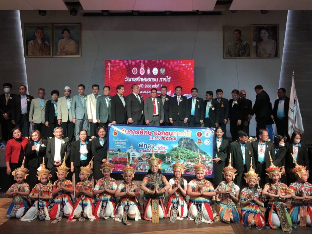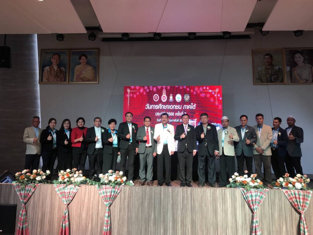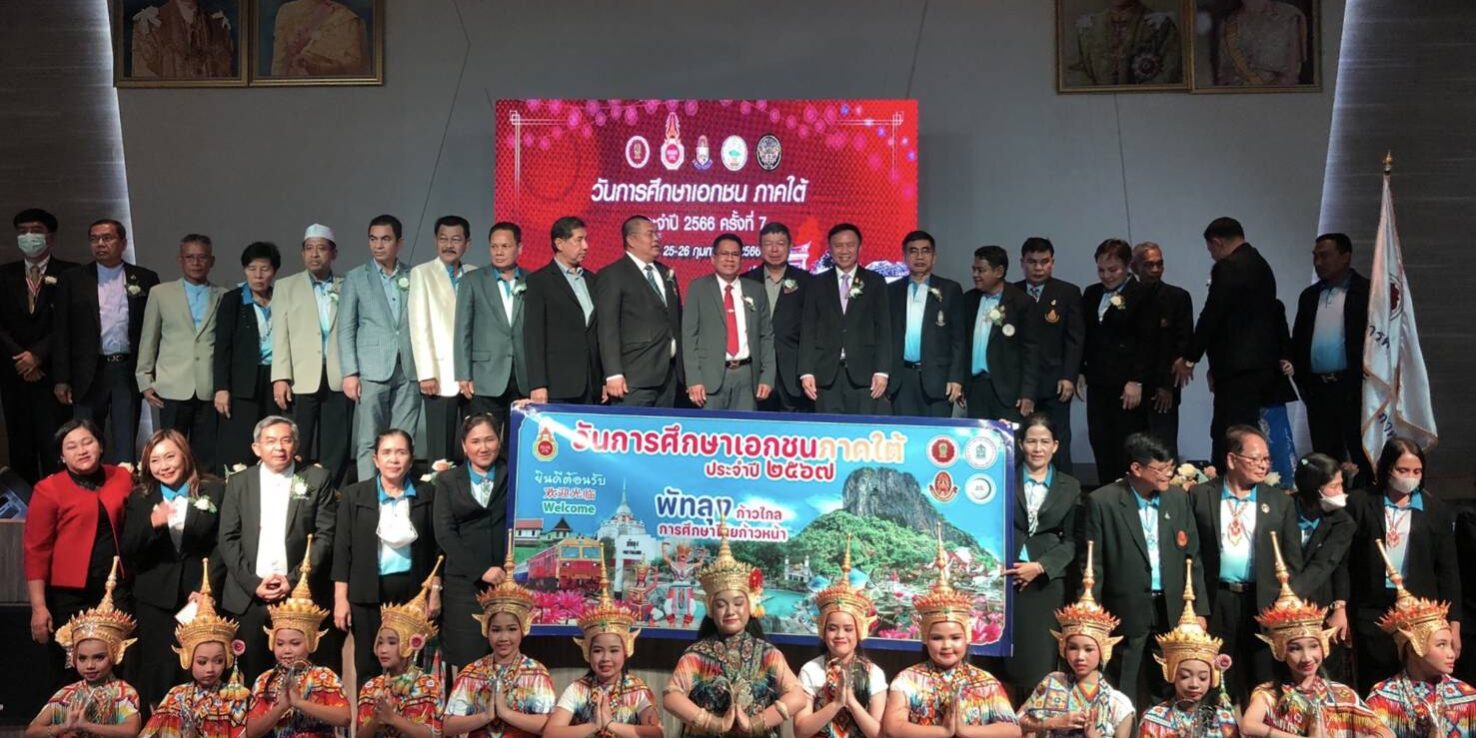 เมื่อวันที่ 26 กุมภาพันธ์ 2566 ที่มหาวิทยาลัยหาดใหญ่ จังหวัดสงขลา : นายมณฑล ภาคสุวรรณ์ เลขาธิการคณะกรรมการส่งเสริมการศึกษาเอกชน (เลขาธิการ กช.) เป็นประธานในพิธีเปิดงานวันการศึกษาเอกชน ภาคใต้ ประจําปี พ.ศ.2566 พร้อมด้วย นายเอกชัย เลิศวิบูลย์ลักษณ์ รองผู้ว่าราชการจังหวัดสงขลา นายประพัทธ์ รัตนอรุณ รองเลขาธิการ (กช.) นายธีระพันธ์ พุทธิสวัสดิ์ ที่ปรึกษาด้านกฎหมายของ (สช.) ศึกษาธิการจังหวัดพื้นที่ภาคใต้ ประธานคณะกรรมการอิสลามประจําจังหวัดสงขลา ผศ.ดร.ศุภเสฏฐ์ คณากูล นายกสมาคมคณะกรรมการประสานและส่งเสริมการศึกษาเอกชน คณะกรรมการประสานและส่งเสริมการศึกษาเอกชนจังหวัดภาคใต้ เครือข่ายพัฒนาการศึกษาเอกชน ข้าราชการสํานักงานศึกษาธิการ ผู้อำนวยการสํานักงานการศึกษาเอกชนจังหวัด ข้าราชการสํานักงานคณะกรรมการส่งเสริมการศึกษาเอกชน ผู้บริหาร ครู บุคลากรทางการศึกษา และนักเรียนโรงเรียนเอกชนจาก 14 จังหวัดภาคใต้ จำนวนกว่า 500 คน เข้าร่วมงาน