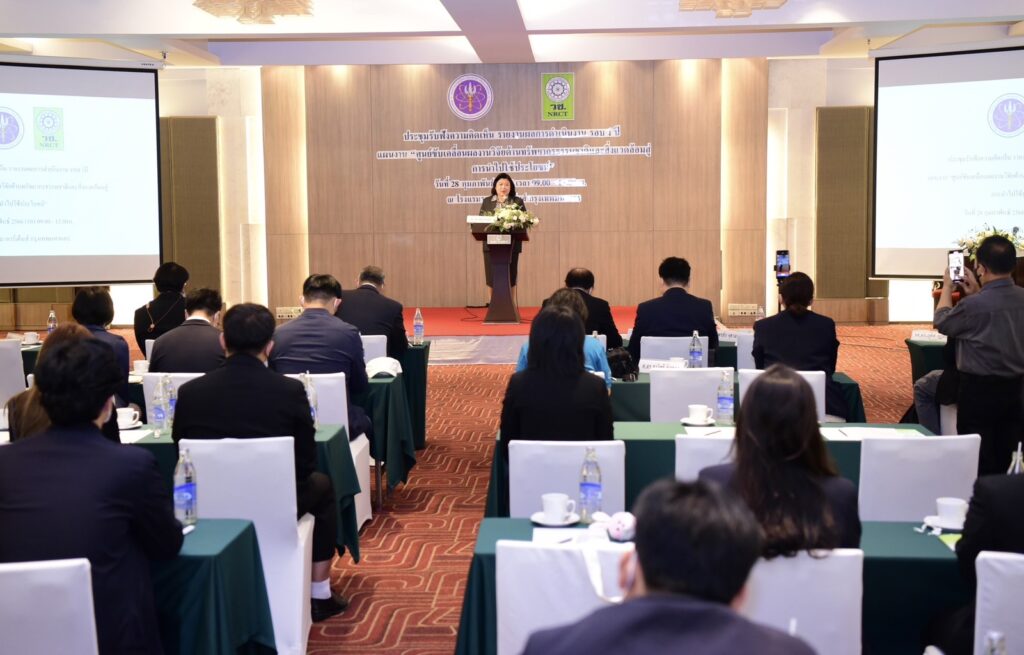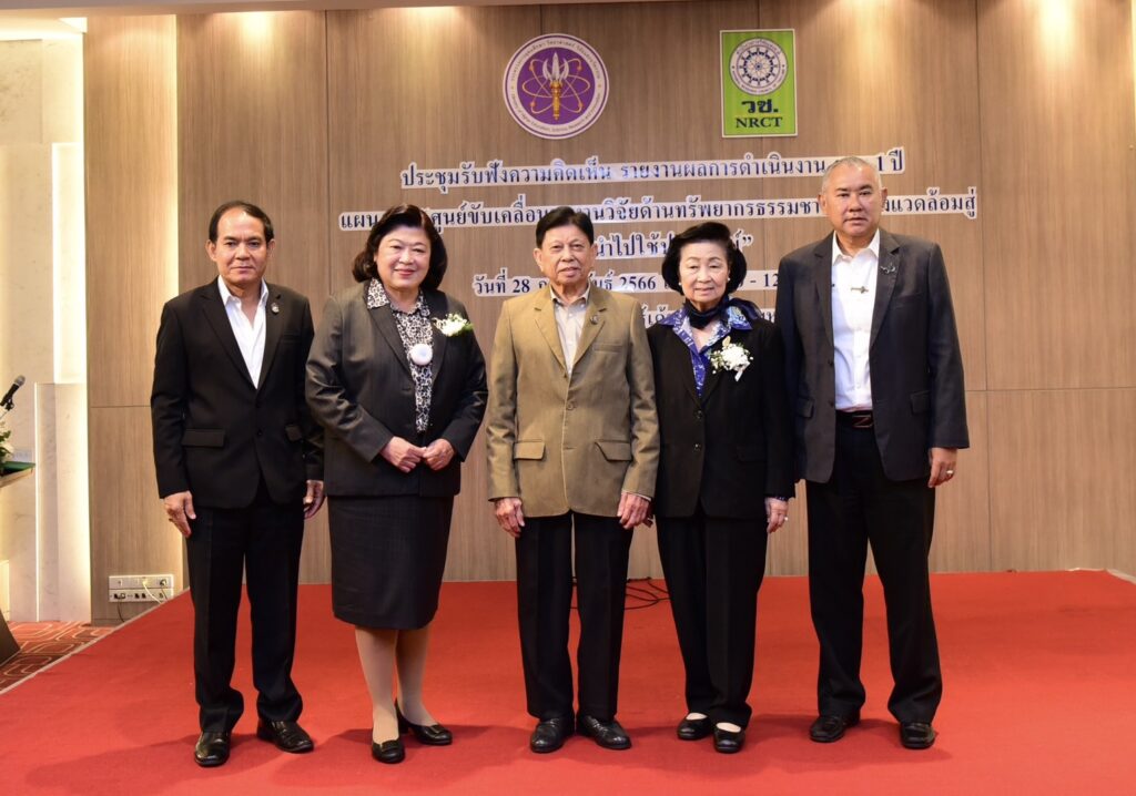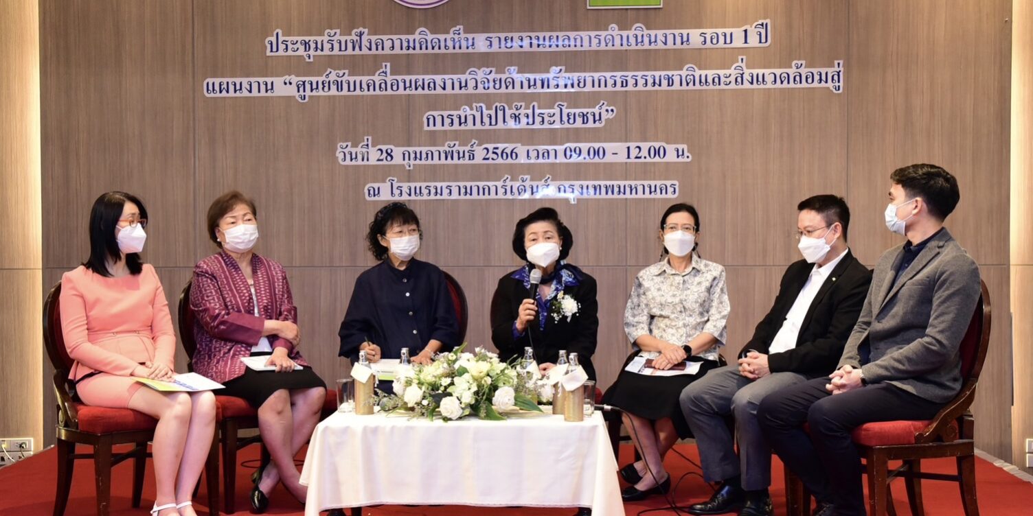 วันที่ 28 กุมภาพันธ์ 2566 สำนักงานการวิจัยแห่งชาติ (วช.) กระทรวงการอุดมศึกษา วิทยาศาสตร์ วิจัยและนวัตกรรม (อว.) จัดประชุมรับฟังความคิดเห็นต่อ (ร่าง) รายงานผลการดำเนินงานรอบ 1 ปี แผนงาน “ศูนย์ขับเคลื่อนผลงานวิจัยด้านทรัพยากรธรรมชาติและสิ่งแวดล้อมสู่การนำไปใช้ประโยชน์” เพื่อเผยแพร่ผลการดำเนินงานภายใต้แผนงานศูนย์ขับเคลื่อนผลงานวิจัย ในระยะ 1 ปีที่ผ่านมา พร้อมรับฟังความคิดเห็นและข้อเสนอแนะ เพื่อพัฒนารายงานผลการดำเนินงานต่อไป โดยมี ดร.วิภารัตน์ ดีอ่อง ผู้อำนวยการสำนักงานการวิจัยแห่งชาติ เป็นประธานเปิดการประชุมรับฟังความคิดเห็นฯ คณะผู้บริหาร วช. และ รองศาสตราจารย์ ดร.นภาวรรณ นพรัตนราภรณ์ ผู้อำนวยการแผนงานฯ กล่าวรายงานผลการดำเนินงาน นอกจากนี้ ยังมีปาฐกถาพิเศษ เรื่อง “ทรัพยากรธรรมชาติและสิ่งแวดล้อม : การขับเคลื่อนไปใช้ประโยชน์อย่างยั่งยืน” โดย ศาสตราจารย์ ดร.สนิท อักษรแก้ว ประธานสภาพัฒนาการเศรษฐกิจและสังคมแห่งชาติ และประธานคณะกรรมการดำเนินการสนับสนุนการวิจัยและนวัตกรรมประเด็นเป้าหมายด้านพัฒนา สังคม และสิ่งแวดล้อม ของ (วช.) ณ ห้องทิวลิป โรงแรมรามาการ์เด้นส์ ถนนวิภาวดีรังสิต กรุงเทพมหานคร และผ่านการประชุมในรูปแบบ Video Conference ผ่านโปรแกรม Zoom