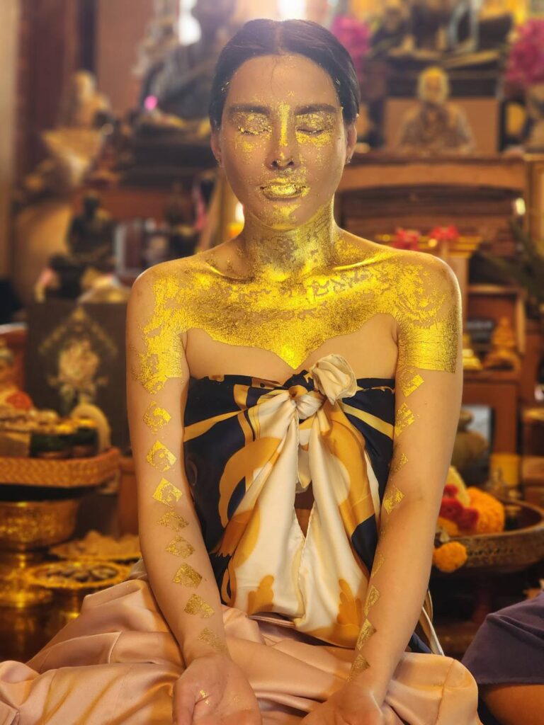 @@@ว่ากันว่า กุศโลบายของการลงเสน่หาร่างทอง คือ หลังจากปิดทองไปแล้ว ผิวพรรณก็จะเปล่งปลั่งขึ้น เรียกได้ว่าเหลืองอร่ามไปทั้งตัว กอปรกับการลงคาถาด้วย ใครเห็นใครก็รัก ใครก็ชื่นชม มีบางตำรากล่าวว่า นักรบที่ถือดาบ ถ้าเห็นหญิงสาวที่ลง เสน่หาร่างทอง แล้วก็จะวางดาบลง เพราะหลงใหลในหญิงสาวผู้นั้น หรือใครที่ว่ามีคาถาอาคมเก่งกล้า พอเจอหญิงสาวที่ลง เสน่หาร่างทอง คาถาก็เสื่อมทันทีเช่นกัน!!!