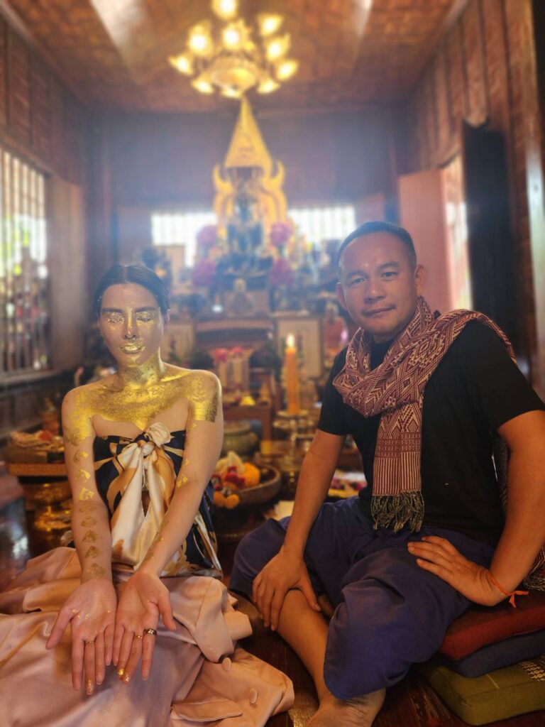 @@@หลังจากทำพิธีลงแผ่นทองเรียบร้อย อาจารย์สรณ์ ก็จะให้ ดร.ปิ๊งปิ๊ง ปาดแผ่นทองลงบนผิวกาย ให้แผ่นทองซึมซับเข้าด้านใน โดย ดร.ปิ๊งปิ๊ง เผยความรู้สึกหลังจากทำพิธีเสร็จแล้วว่า