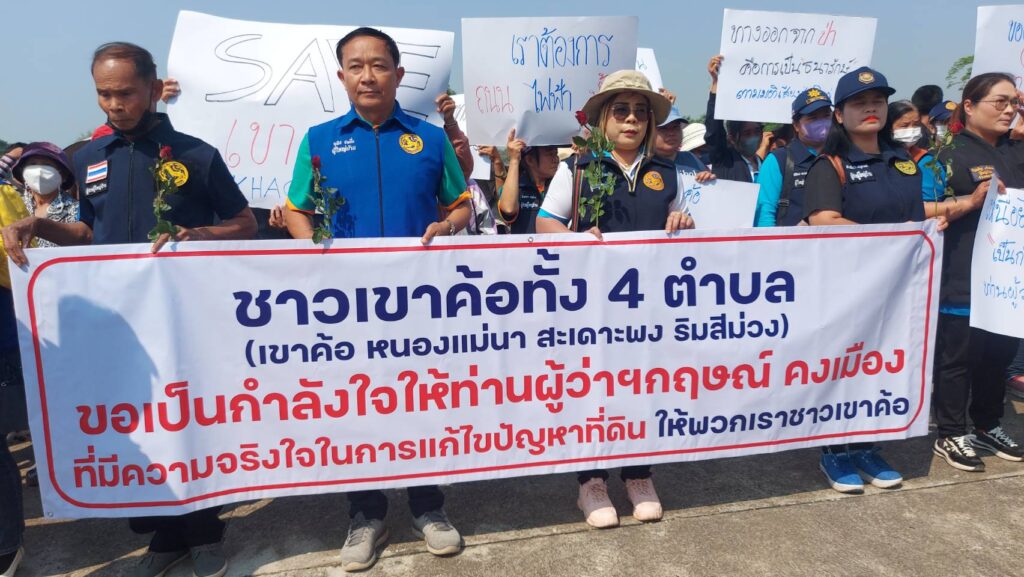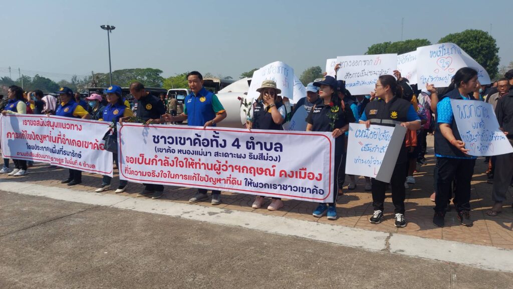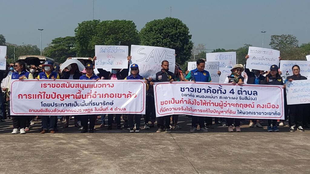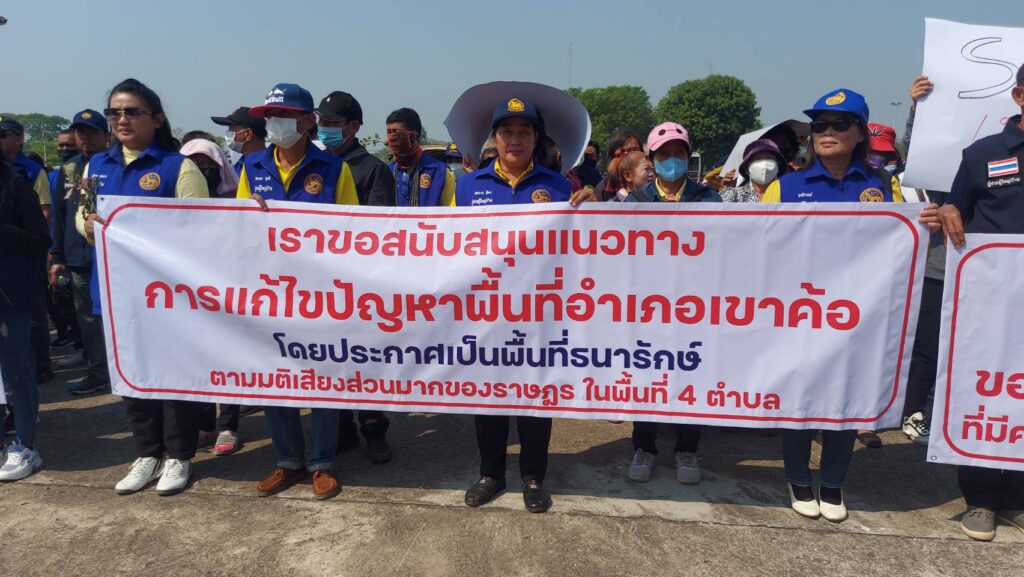 นายกฤษณ์ คงเมือง ผู้ว่าราชการจังหวัดเพชรบูรณ์ กล่าวว่า สิ่งที่ชาวอำเภอเขาค้อมายื่นข้อเรียกร้องในวันนี้เป็นสิ่งที่จังหวัดเพชรบูรณ์ ดำเนินการอยู่แล้ว และได้ดำเนินการมาหลายปี เรื่องการขอพัฒนาโครงสร้างพื้นฐาน ระบบสาธารณูปโภค จะเกี่ยวข้องกับการขอใช้พื้นที่ ซึ่งเดิมเป็นพื้นที่ของกรมป่าไม้ การที่องค์กรปกครองส่วนท้องถิ่น หรือส่วนราชการต่างๆ จะเข้าไปดำเนินการ จะต้องขออนุญาตกรมป่าไม้ ซึ่งอาจจะล่าช้า และติดขัด ทางจังหวัดเพชรบูรณ์จึงได้หาแนวทางแก้ไข โดยผลักดันให้ พื้นที่ตรงนี้เป็นพื้นที่ธนารักษ์ เพื่อให้หลุดจากกฎหมายป่าไม้ในเบื้องต้น การดำเนินการต่างๆ ที่เป็นปัญหาอุปสรรค ก็จะกลับมาอยู่ในอำนาจของกรมธนารักษ์ ซึ่งผู้ว่าราชการจังหวัด และธนารักษ์จังหวัด จะมีอำนาจในการอนุญาต ได้อย่างรวดเร็ว ซึ่งปัจจุบันเรื่องนี้อยู่ในการดูแลของรัฐบาลแล้ว และคิดว่ารัฐบาลจะเร่งแก้ไขปัญหาความเดือดร้อนของประชาชนในพื้นที่ กว่า 10,000 คน ซึ่งเป็นปัญหามา 30-40 ปี ให้ได้รับการแก้ไข