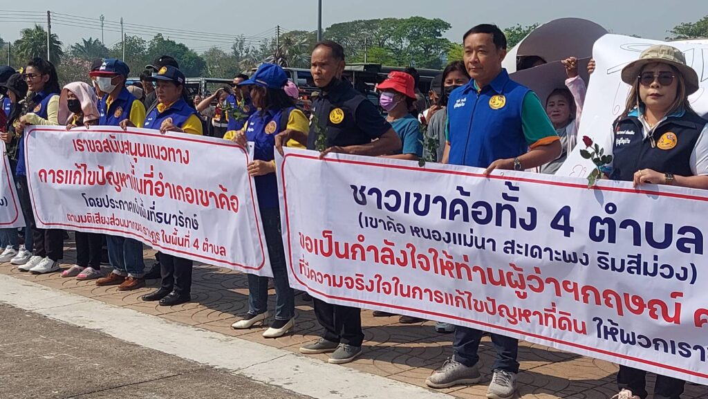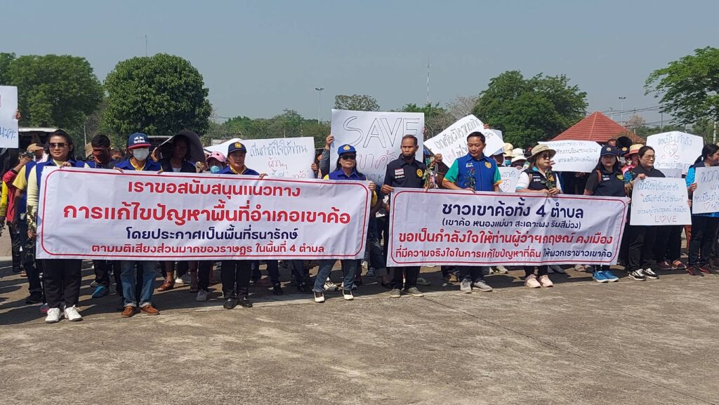 โดยการยื่นหนังสือต่อผู้ว่าราชการจังหวัดเพชรบูรณ์ในครั้งนี้ ได้เรียกร้องให้หน่วยงานที่เกี่ยวข้องเร่งรัดการแก้ไขปัญหาเกี่ยวกับการพัฒนาโครงสร้างพื้นฐานในเขตพื้นที่ 4 ตำบล เช่น การก่อสร้างถนน ไฟฟ้าระบบประปา เป็นต้น, ขอสนับสนุนแนวทางการแก้ไขปัญหาพื้นที่อำเภอเขาค้อ โดยประกาศให้พื้นที่ดังกล่าวเป็นพื้นที่ธนารักษ์ตามมติเสียงส่วนใหญ่ของราษฎรในพื้นที่ 4 ตำบล และชาวอำเภอเขาค้อทั้ง 4 ตำบล และ ขอแสดงจุดยืน และเป็นกำลังใจให้ผู้ว่าราชการจังหวัดเพชรบูรณ์ ที่มีความจริงใจในการแก้ไขปัญหาเกี่ยวกับที่ดินให้แก่ชาวอำเภอเขาค้อ