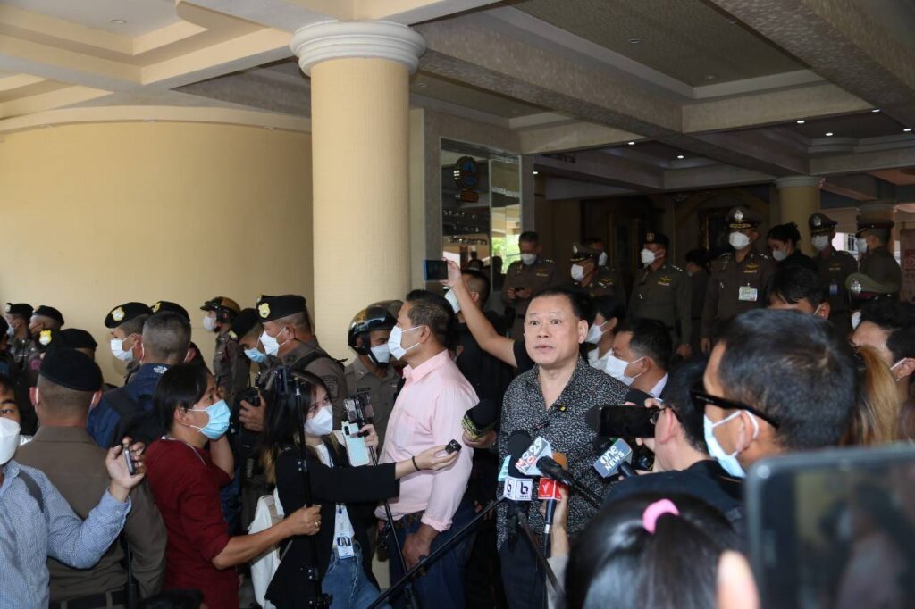 หลังจากที่ถูกต่อว่าอย่างหนักท่ามกลางสื่อมวลชนและตำรวจ นายสันธนะฯ เริ่มหมดความอดทนและตะโกนด่านายชูวิทย์ฯ ว่า จะไม่ยอมให้นายชูวิทย์ฯ ต่อว่าอย่างเสียศักดิ์ศรี และจะดำเนินคดีข้อหาหมิ่นประมาท นายชูวิทย์ฯ ก็ท้าทายอย่างต่อเนื่อง สุดท้ายเจ้าหน้าที่ตำรวจก็ได้ขอให้ นายสันธนะฯ เดินทางกลับไปก่อน