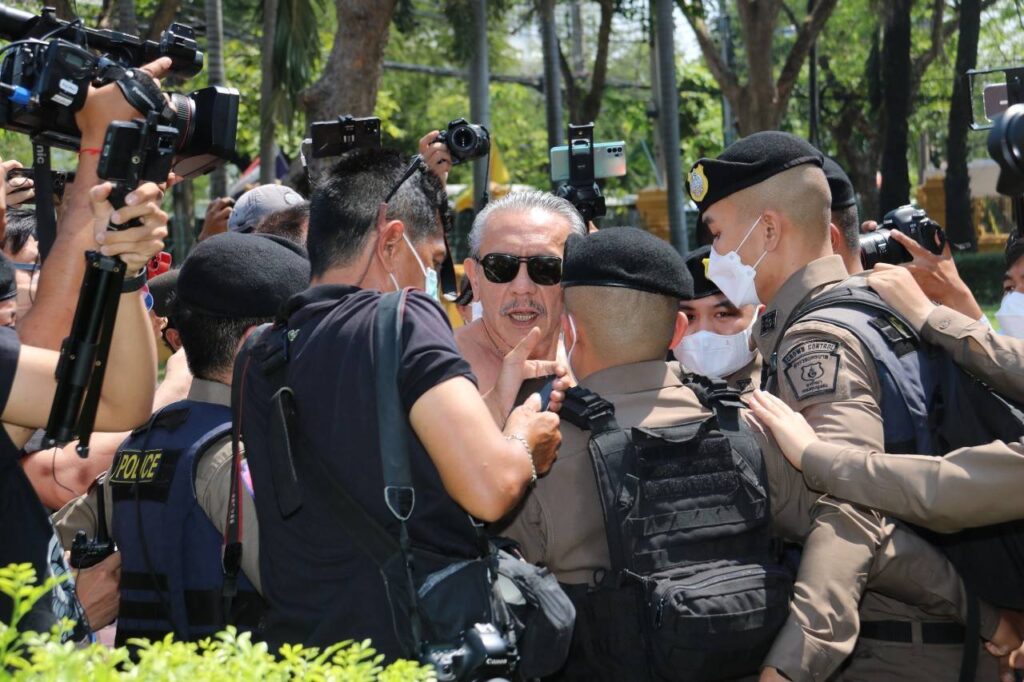 วันที่ 2 มี.ค.66 เวลา 11.00 น.ที่ กองบัญชาการตำรวจนครบาล (บช.น.) : นายสันธนะ ประยูรรัตน์ ยื่นหนังสือถึง พล.ต.ท.ธิติ แสงสว่าง ผบช.น.เพื่อเร่งรัดคดีที่ร้องทุกข์กล่าวโทษ นายชูวิทย์ กมลวิศิษฐ์ พร้อมพวกรวม 9 คดี แต่ขณะที่ นายสันธนะฯ ลงจากรถบริเวณหน้า บช.น. นายชูวิทย์ฯ ที่มาดักรออยู่หน้าประตูทางเข้าได้ปรี่เข้าหา นายสันธนะฯ ทันที การ์ดของนายสันธนะฯ ได้เข้าล็อคคอนายชูวิทย์ฯ ไว้ จนเกิดเหตุการณ์ชุลมุน ตำรวจควบคุมฝูงชนที่มาคอยรักษาการณ์อยู่กว่า 30 คน ต้องเข้าห้ามทั้งสองออกจากกัน