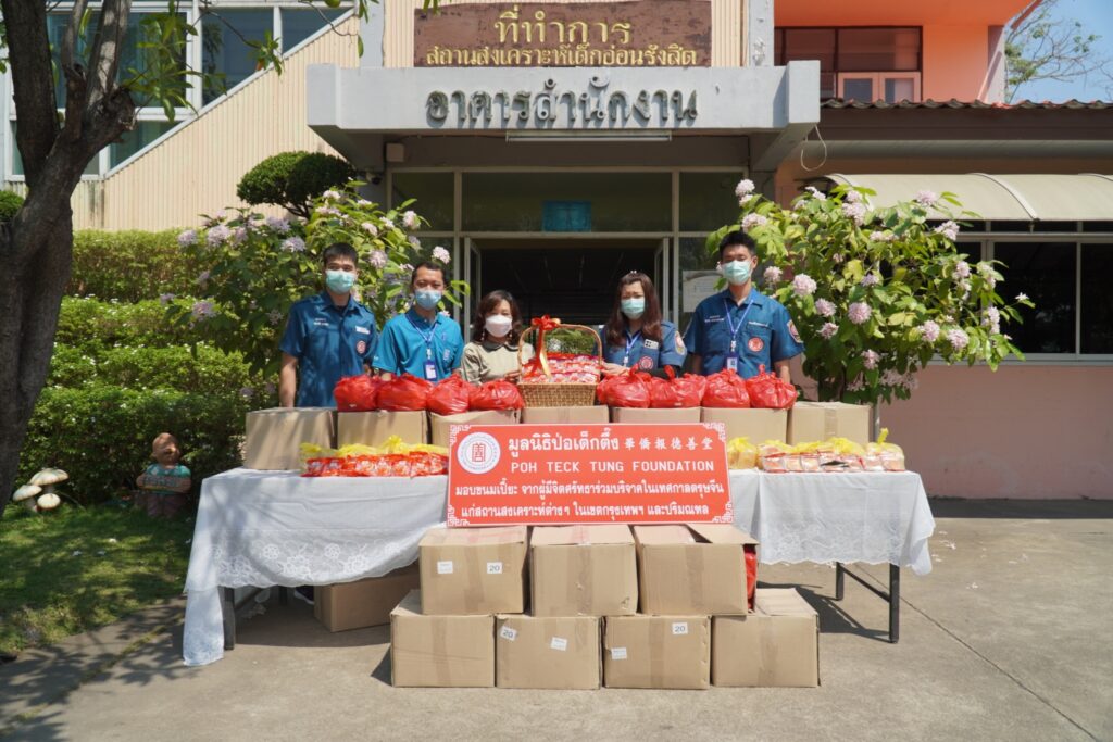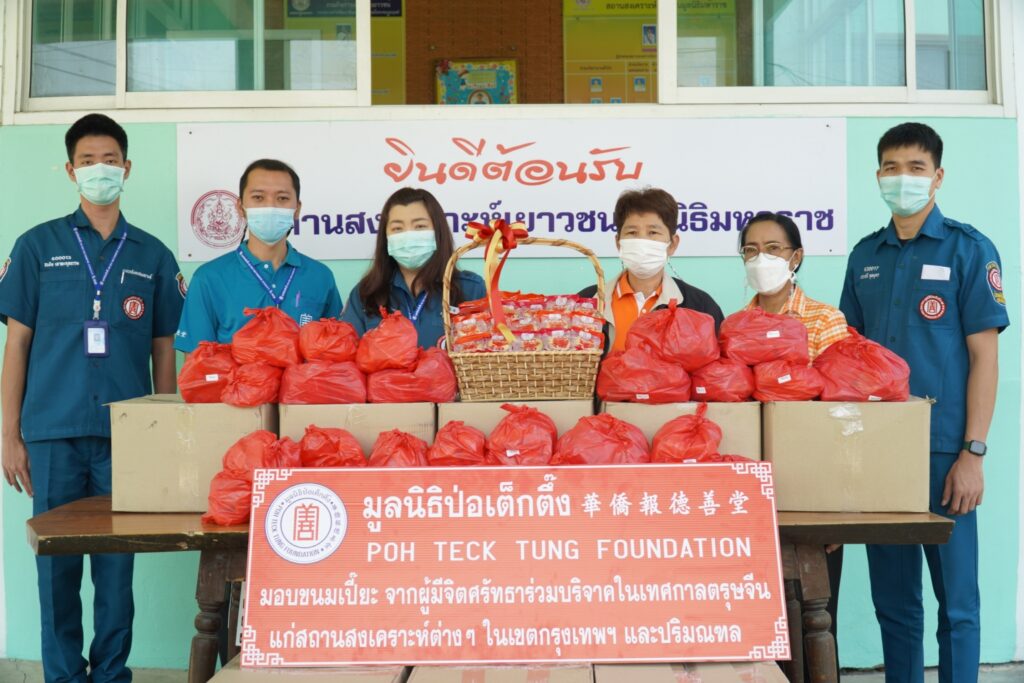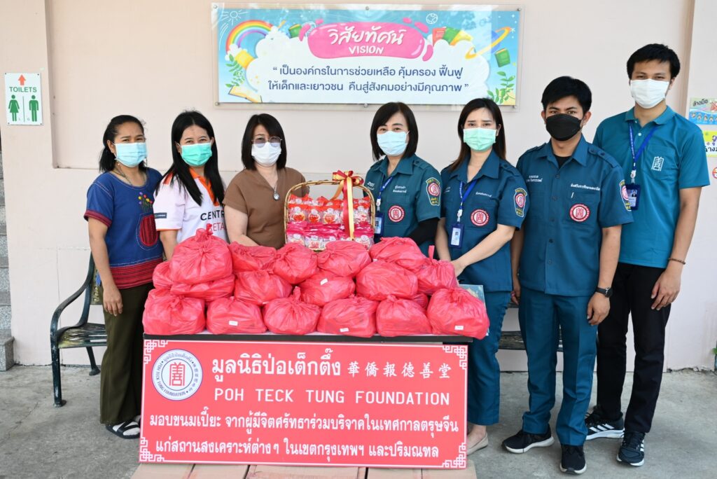 ระหว่างวันที่ 27 กุมภาพันธ์ และ 2 มีนาคม 2566 ที่ผ่านมา มูลนิธิป่อเต็กตึ๊ง นำโดย นางศิริพร กระจ่างหล้า ผู้จัดการฝ่ายสังคมสงเคราะห์ พร้อมด้วย นางสาวศุภรัตน์ สมบัติเจริญไทย หัวหน้าแผนกส่งเสริมการศึกษาและอาชีพ นำทีมสังคมสงเคราะห์ลงพื้นที่ส่งมอบขนมมงคล ที่ผู้มีจิตศรัทธาได้ร่วมทำบุญเนื่องในเทศกาลตรุษจีน ประจำปี 2566 ให้กับสถานสงเคราะห์เด็กและคนชรารวม 15 แห่ง ประกอบด้วย ศูนย์ฝึกอบรมเด็กและเยาวชน บ้านอุเบกขา บ้านสิรินธร บ้านมุทิตา และบ้านกาญจนาภิเษก จังหวัดนครปฐม สถานสงเคราะห์เด็กกำพร้าแห่งประเทศไทย กรุงเทพฯ สถานแรกรับเด็กชายปากเกร็ด (ภูมิเวท) สถานสงเคราะห์เด็กชายบ้านปากเกร็ด สถานคุ้มครองคนไร้ที่พึ่งนนทบุรี และสถานคุ้มครองและพัฒนาคนพิการบ้านราชาวดี จังหวัดนนทบุรี สถานสงเคราะห์เยาวชนมูลนิธิมหาราช สถานคุ้มครองคนไร้ที่พึ่งชายธัญบุรี สถานคุ้มครองคนไร้ที่พึ่งหญิงธัญบุรี สถานแรกรับเด็กหญิงบ้านธัญญพร สถานสงเคราะห์เด็กอ่อนรังสิต และมูลนิธิมิตรภาพสงเคราะห์คนชราคนชราหญิงติวานนท์ จังหวัดปทุมธานี โดยมีผู้แทนจากหน่วยงานต่างๆ เป็นผู้รับมอบ อีกทั้งทางมูลนิธิฯ ยังได้แจกจ่ายให้กับผู้ประสบปัญหารายเดือนให้ได้รับประทานขนมมงคลต่อไป รวมจำนวนขนมเปี๊ยะและขนมจันอับที่แจกจ่ายทั้งสิ้น 65,587 ห่อ