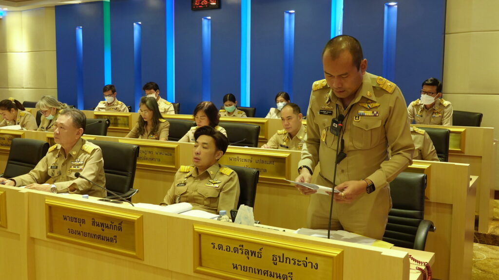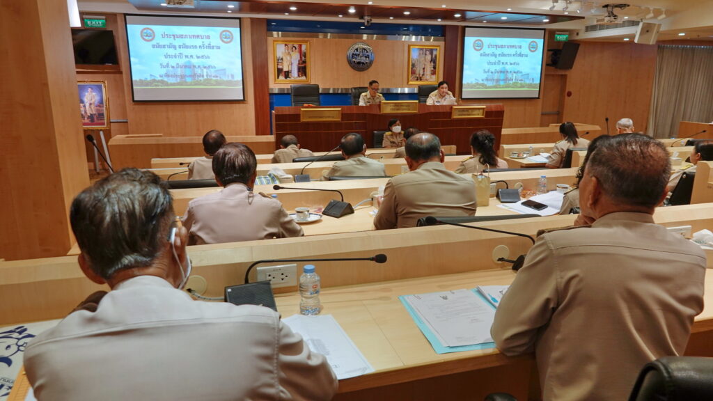 บรรยากาศในสภาฯ มีนายเยี่ยม เทพธัญญะ ทำหน้าที่ประธานสภาเทศบาล ทน.รังสิต เปิดประชุมซึ่งมีสมาชิกสภา ทน.รังสิต เข้าร่วมประชุมครบทั้ง 22 คน ไม่มา 2 ท่าน เนื่องจากสำนักช่าง เทศบาลนครรังสิต ได้รับมอบหมายจากผู้บริหารให้ดำเนินการโครงการที่มีความจำเป็นเร่งด่วนเพื่อให้บริการประชาชนในเขตเทศบาลนครรังสิต ด้านโครงสร้างพื้นฐาน โครงการปรับปรุงสะพาน คสล.ข้ามคลองรังสิต-ประยูรศักดิ์(บริเวณทางเข้าหมู่บ้านชมฟ้า-วรางกูร) เพื่อแก้ไขปัญหาจราจร เพิ่มประสิทธิภาพในการสัญจรไปมา โครงการก่อสร้างลานกีฬากลางแจ้งบริเวณโรงเรียนชุมชนประชาธิปัตย์ เพื่อให้มีลานกีฬาสำหรับชุมชน เยาวชนห่างไกลยาเสพติด เยาวชนมีกิจกรรมที่ดีในการสันทนาการ และโครงการปรับปรุงฝาบ่อพัก เพื่อปรับปรุงฝาบ่อพัก จึงมีความจำเป็นเร่งด่วนที่ต้องดำเนินการ