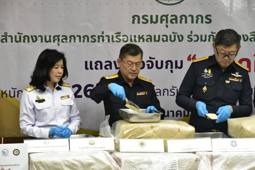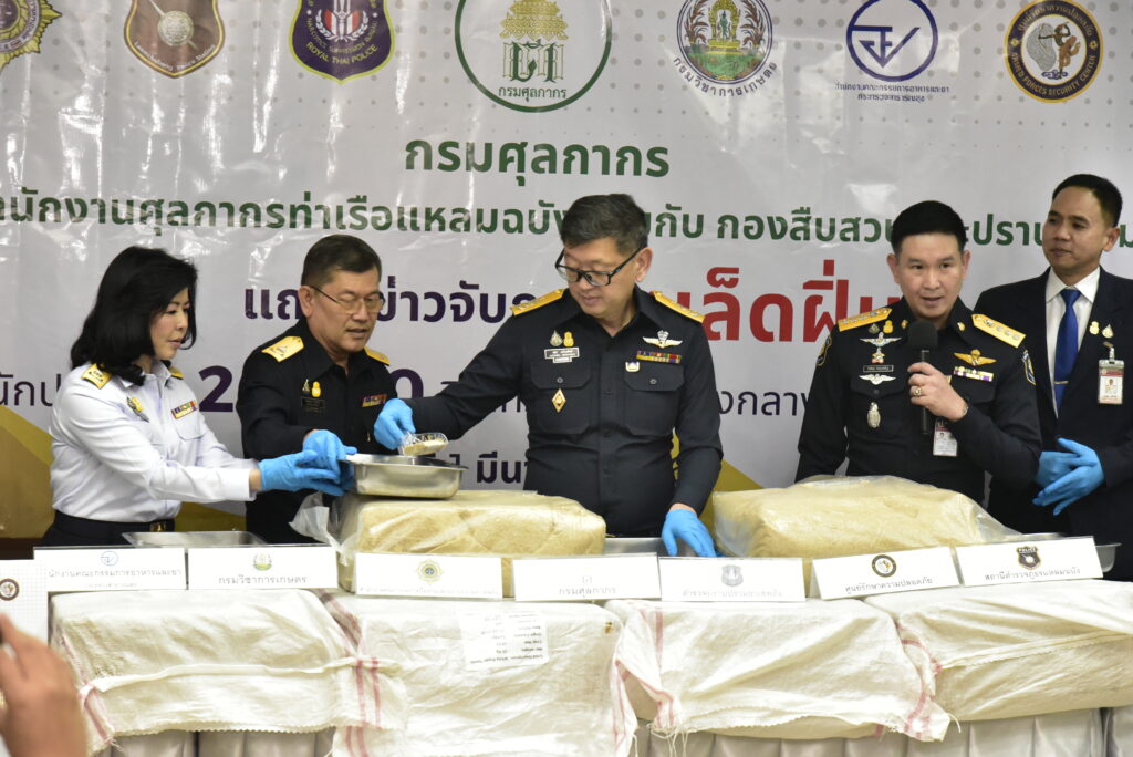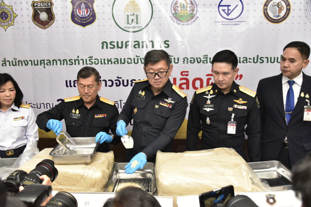 นายพชร อนันตศิลป์ อธิบดีกรมศุลกากร เปิดเผยว่า ตามที่พลเอกประยุทธ์ จันทร์โอชา นายกรัฐมนตรีและรัฐมนตรีว่าการกระทรวงกลาโหม มีนโยบายเดินหน้าปราบปรามยาเสพติดทั้งการผลิต การนำเข้า การนำผ่าน และการลักลอบจำหน่ายและสั่งการให้ทุกหน่วยงานที่เกี่ยวข้องบูรณาการการทำงานร่วมกัน เพื่อปราบปรามยาเสพติดอย่างเข้มงวด ด้านกระทรวงการคลัง โดยนายอาคม เติมพิทยาไพสิฐ รัฐมนตรีว่าการกระทรวงการคลัง และนายสันติ พร้อมพัฒน์ รัฐมนตรีช่วยว่าการกระทรวงการคลัง จึงสั่งการให้หน่วยงานในสังกัดกระทรวงการคลัง เพิ่มความเข้มงวดและเดินหน้าปราบปรามการลักลอบนำยาเสพติดเข้ามาในราชอาณาจักรทุกเส้นทาง กรมศุลกากรจึงเพิ่มการเฝ้าระวังการลักลอบนำยาเสพติดเข้ามาในราชอาณาจักร ทั้งทางบก ทางเรือและทางอากาศ ซึ่งที่ผ่านมามีการลักลอบนำยาเสพติดเข้ามาและออกนอกราชอาณาจักรอย่างต่อเนื่อง