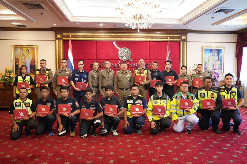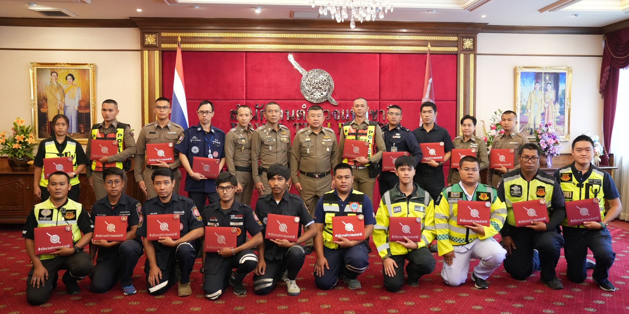 พล.ต.อ.ดำรงศักดิ์ฯ กล่าวว่า จากเหตุการณ์เมื่อวันที่ 12 ก.พ.66 เวลาประมาณ 17.15 น. เจ้าหน้าที่ตำรวจ สน.หัวหมาก ได้รับแจ้งเหตุรถจักรยานยนต์เสียหลักล้ม มีผู้บาดเจ็บสาหัส บนถนนรามคำแหง ได้มี ส.ต.ท.ธนภูมิ ธรรมโหร ผู้บังคับหมู่ จราจร สน.หัวหมาก ปฏิหน้าที่ป้อมควบคุมสัญญาณไฟจราจรแยกรามคำแหง ได้แจ้งให้ ส.ต.ท.ฐิติพันธ์ รุ่งรังษี ผู้บังคับหมู่ จราจร สน.หัวหมาก ซึ่งปฏิบัติหน้าที่สายตรวจจราจรให้ไปตรวจสอบ โดย ส.ต.ท.ฐิติพันธ์ฯ ได้นำเครื่อง AED หรือ เครื่องกระตุกหัวใจไฟฟ้าอัตโนมัติ ไปยังที่เกิดเหตุด้วย เมื่อถึงที่เกิดเหตุ พบผู้บาดเจ็บสาหัสเป็นหญิง 1 ราย ตรวจสอบเบื้องต้นไม่พบสัญญาณชีพ เจ้าหน้าที่ตำรวจ ร่วมกับ พลเมืองดี และทีมอาสาสมัครกู้ภัย จึงรีบนำเครื่อง AED มาใช้ช่วยเหลือ และช่วยกันปั๊มหัวใจต่อเนื่อง ระหว่างนั้นก็ประสานขอสนับสนุนรถพยาบาล ซึ่งมีรถพยาบาลขั้นสูง (ALS) ศูนย์ส่งกลับ รพ.ตำรวจ โดยเจ้าหน้าที่ร่วมกันให้การช่วยเหลือ จนผู้บาดเจ็บกลับมามีสัญญาณชีพ จึงนำส่งโรงพยาบาลใกล้เคียงได้อย่างทันท่วงที
